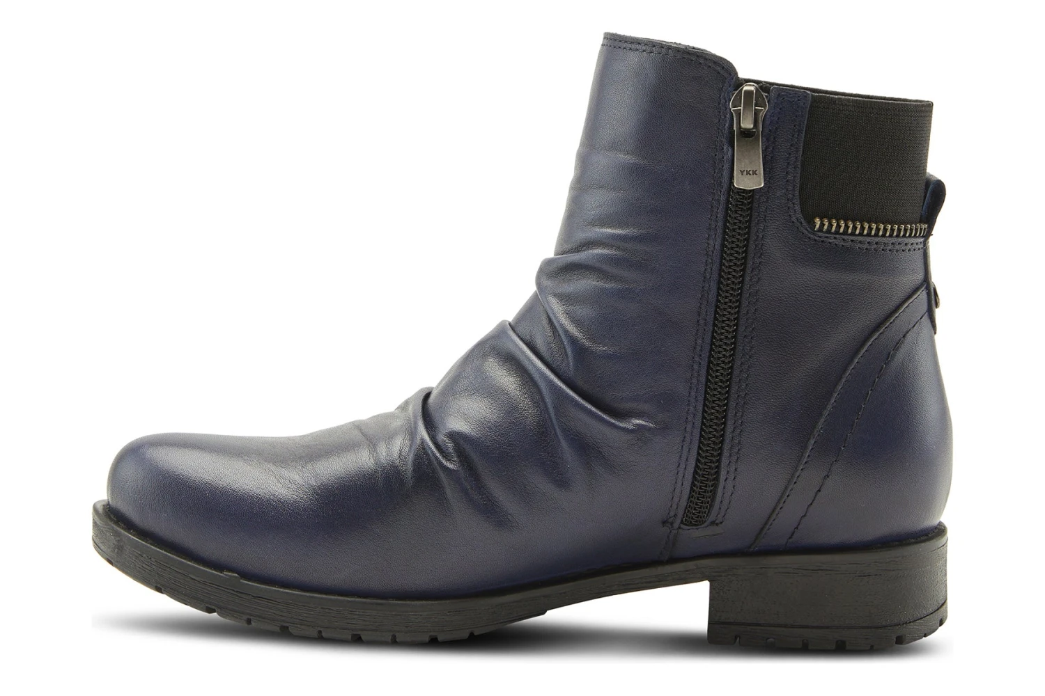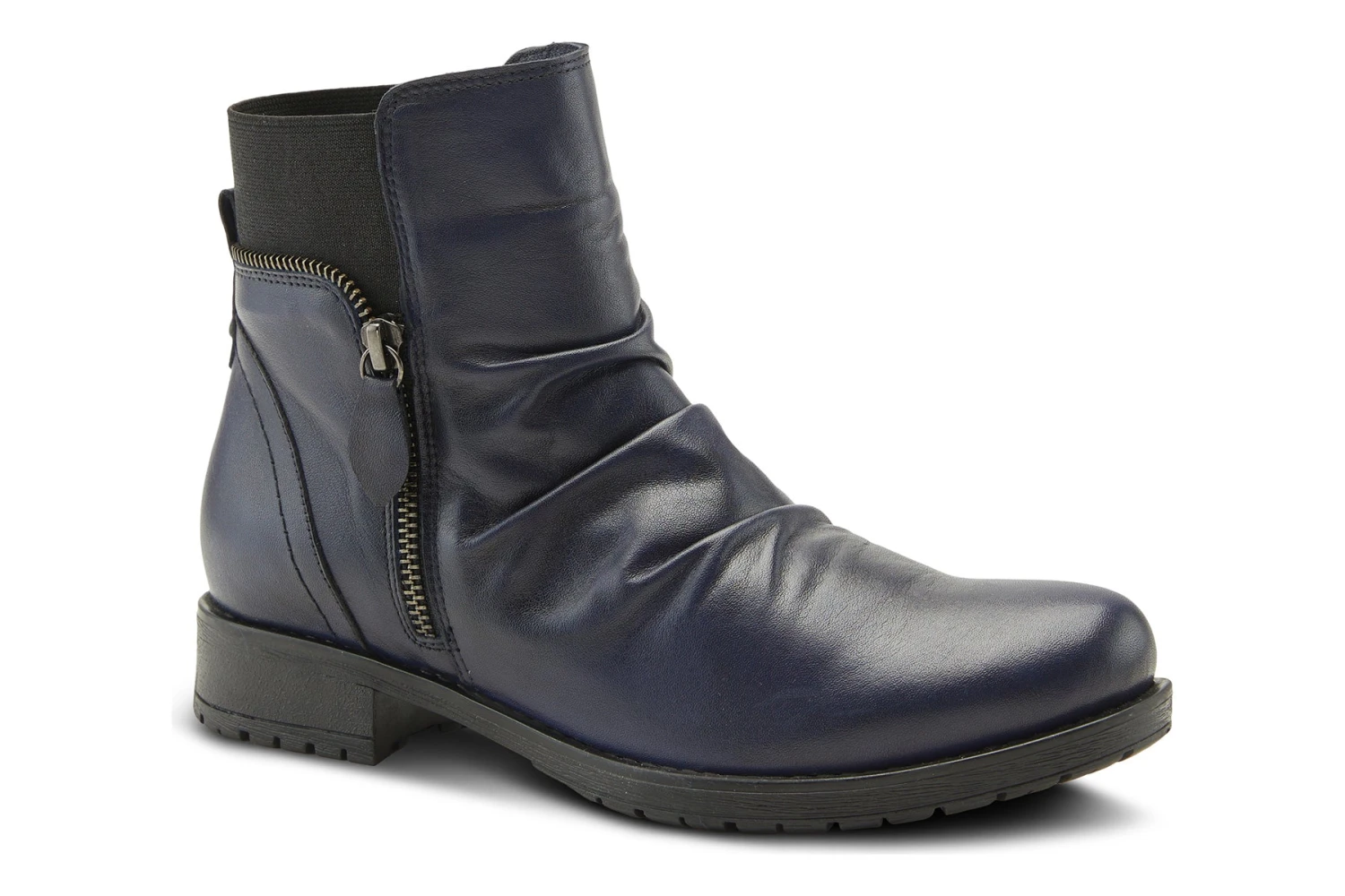 Spring Step Style: ABEL -Fashionable outside moto-style decorative zipper brings a cool element to this buttery soft classic leather bootie. The elastic stretch band, cushioned insole and flexible sole bring comfort.