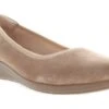 European influenced, premium leather T-strap shoe featuring a laser etching and cutout design, an adjustable hook and loop ankle strap, and artesian whip stitching detail all on a leather-wrapped, comfort wedge with a flexible forefoot.