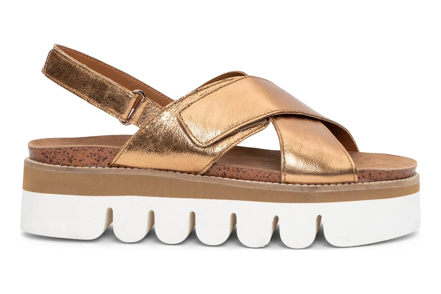 Flagstaff pairs a classic sandal upper with a funky and fashion-forward outsole for a winning combination! Featuring wide criss-cross straps and an adjustable ankle strap, both adjustable via hook and loop closures for a custom and secure fit. The combination of ara’s HighSoft with the lightweight, shock absorbent and flexible platform sole is magical. This sandal is fun, fashionable and functional.