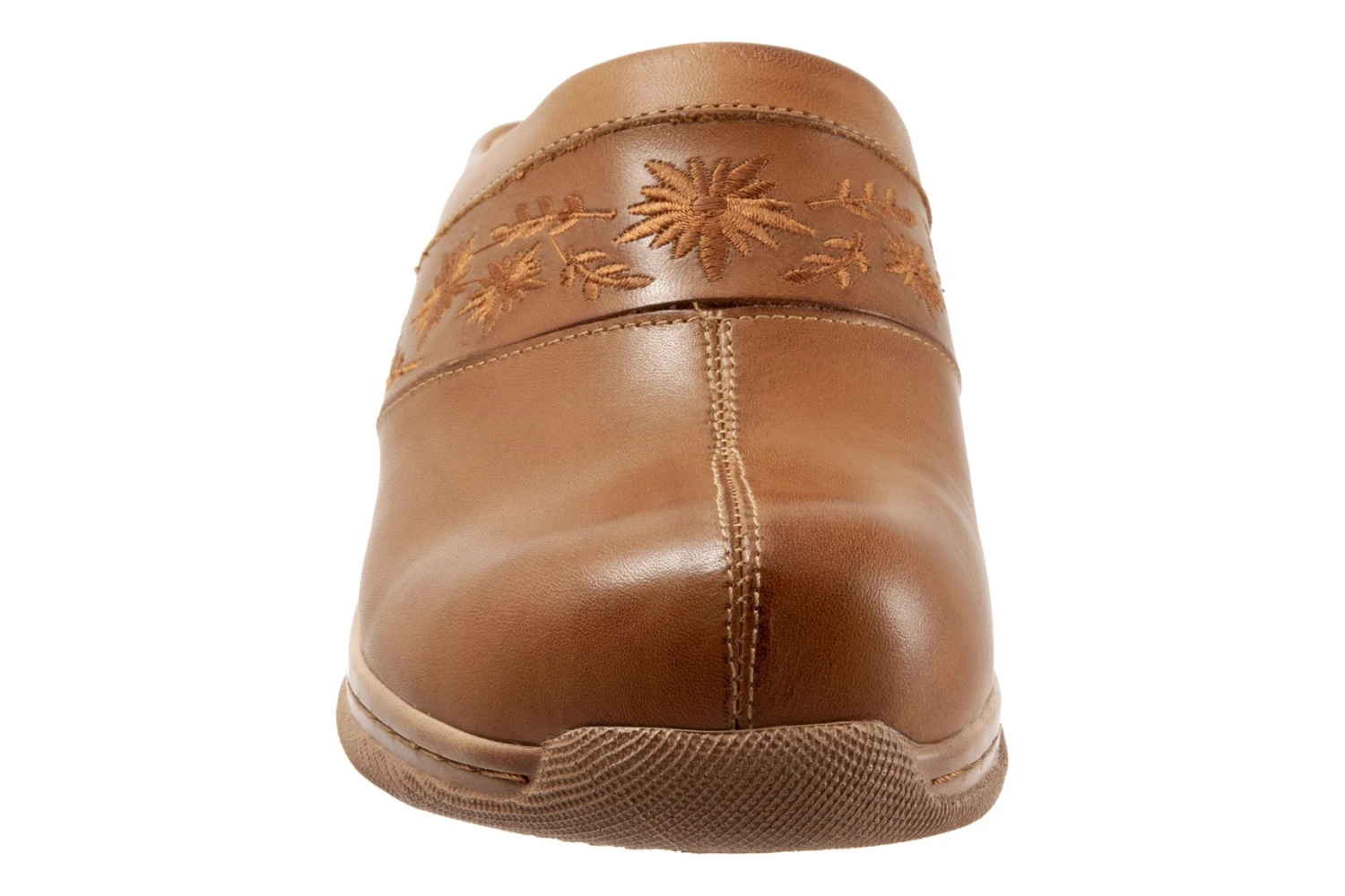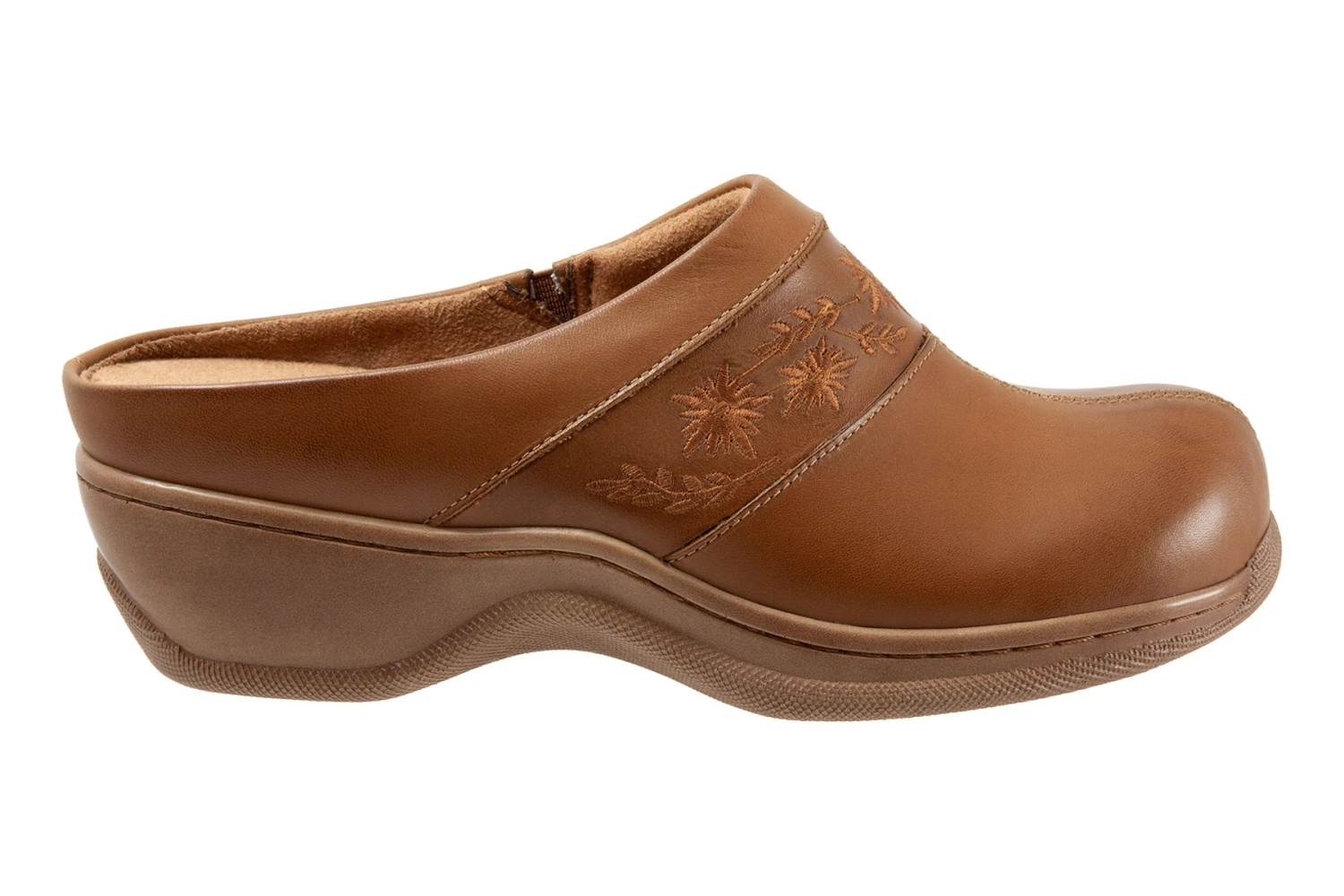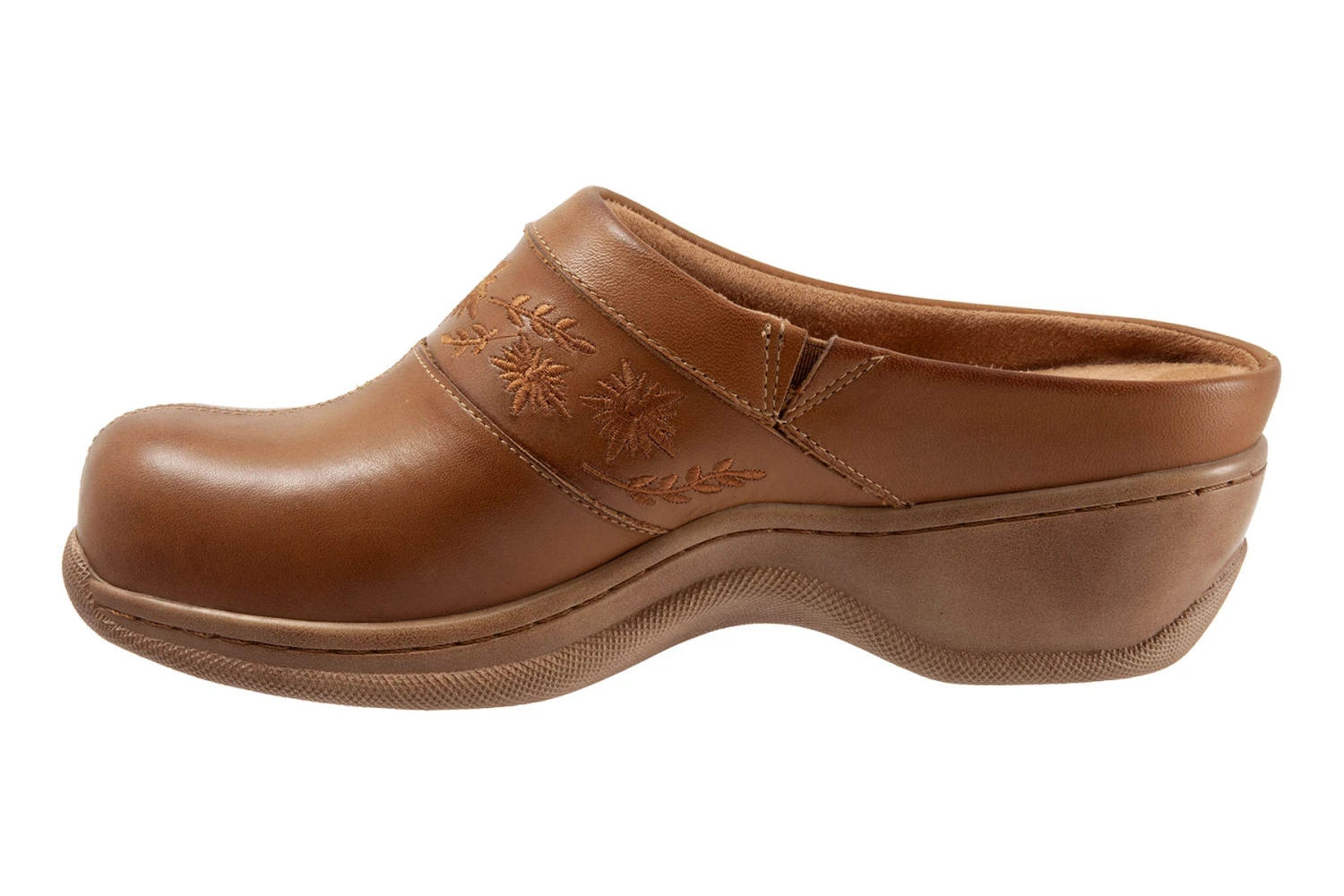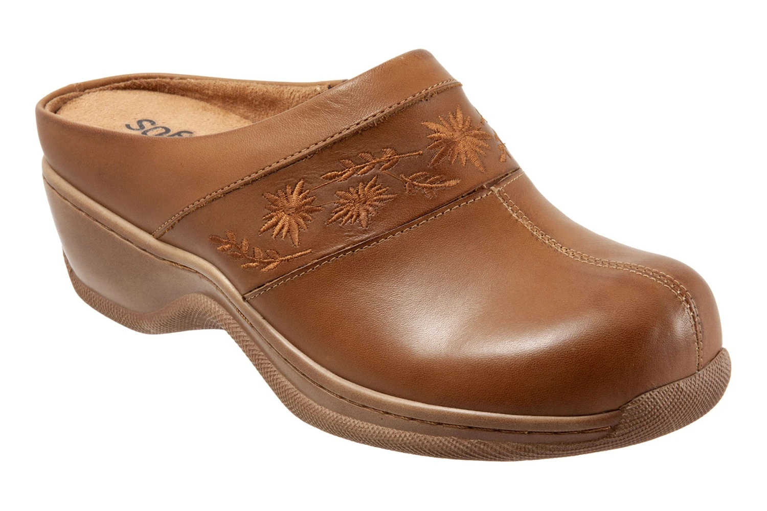 The Aurora clog has a decorative embroidered band for a delicate feminine touch. The Aurora also features a padded collar and cushioned removable footbed.