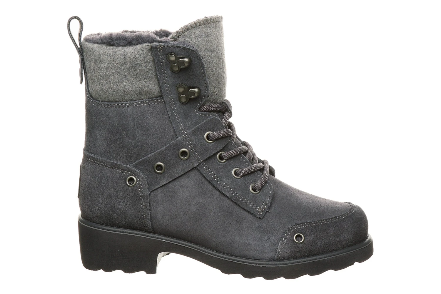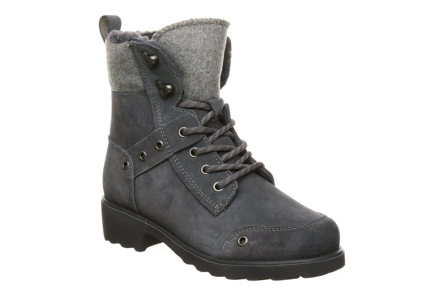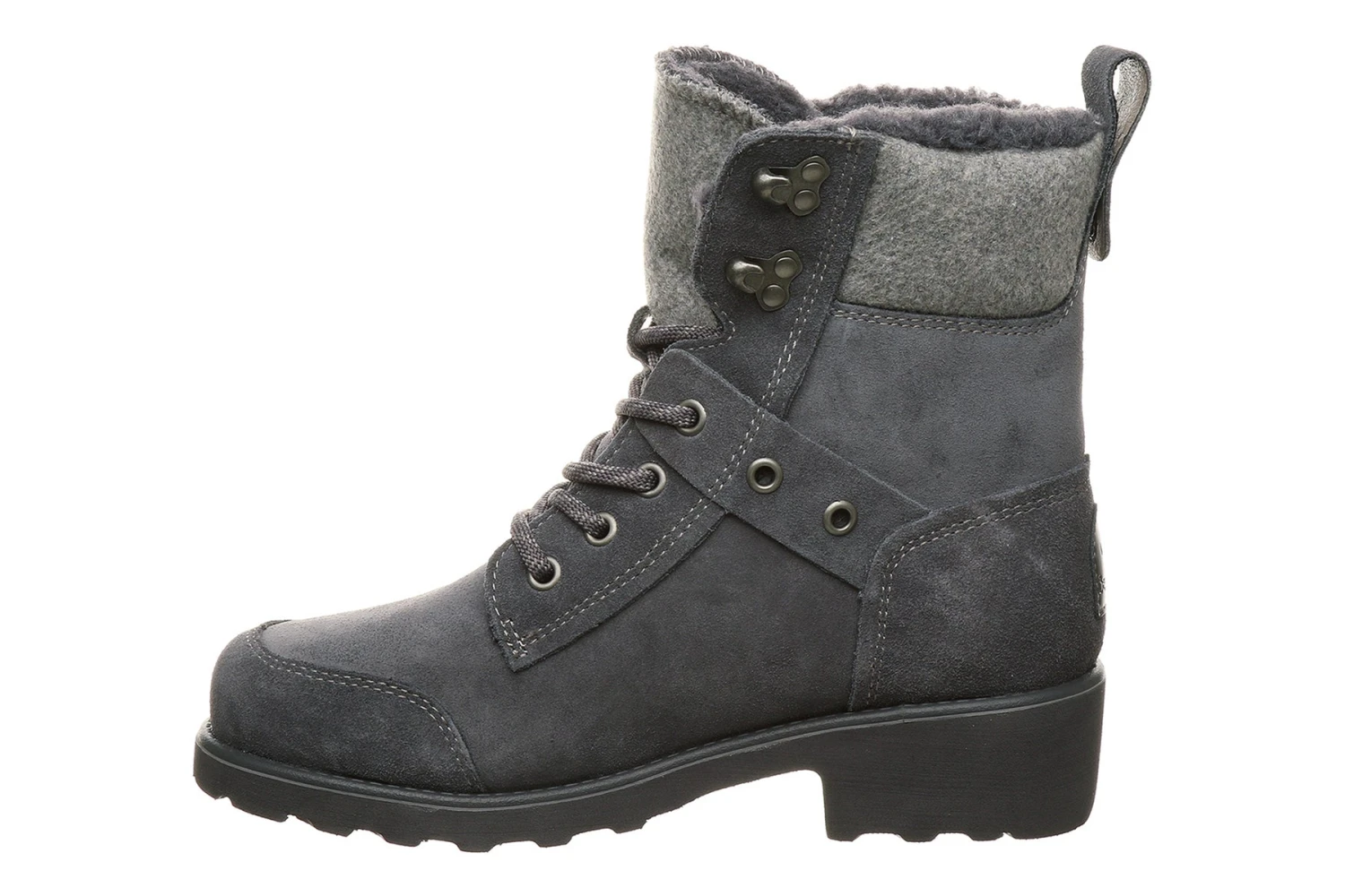 Bearpaw Alicia is a warm winter boot designed for comfort. Features include soft suede and felted wool uppers, wool blend lining and blown rubber outsole. These Bearpaw boots also have an adjustable fit lace-up closure and removable comfort sheepskin footbed.