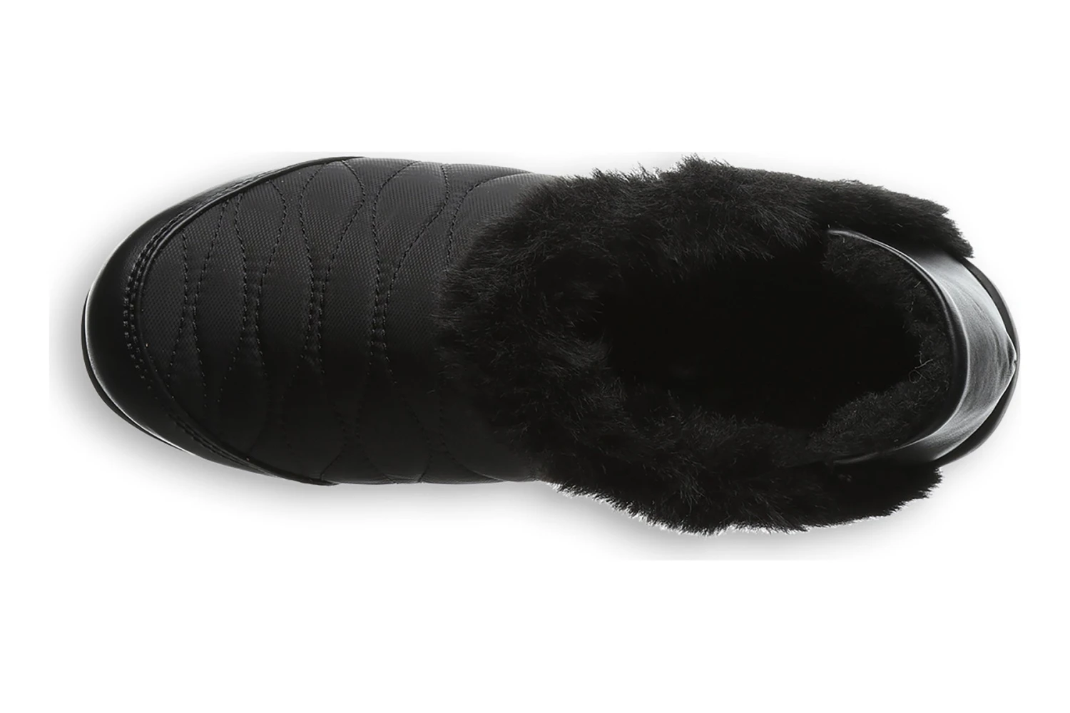 Bearpaw Elaine is a reliable and comfortable women’s slipper. Features include a quilted nylon and faux fur upper, wool blend lining and sturdy rubber outsole. A removable sheepskin footbed offers superior comfort, while a faux fur collar keeps feet warm during cold days and nights.