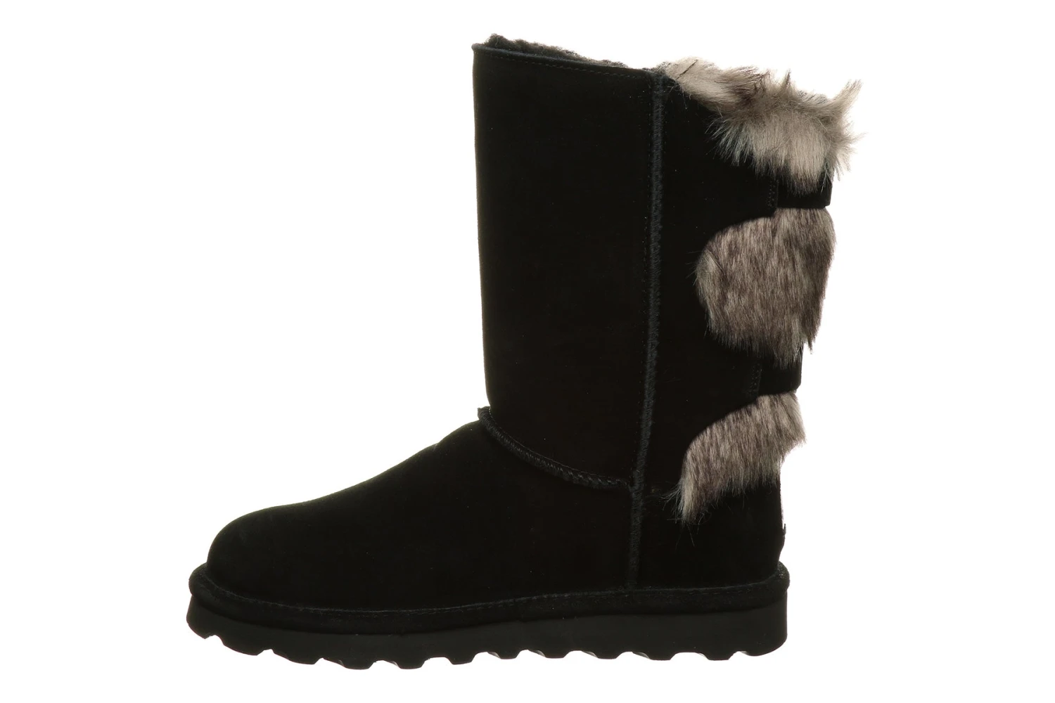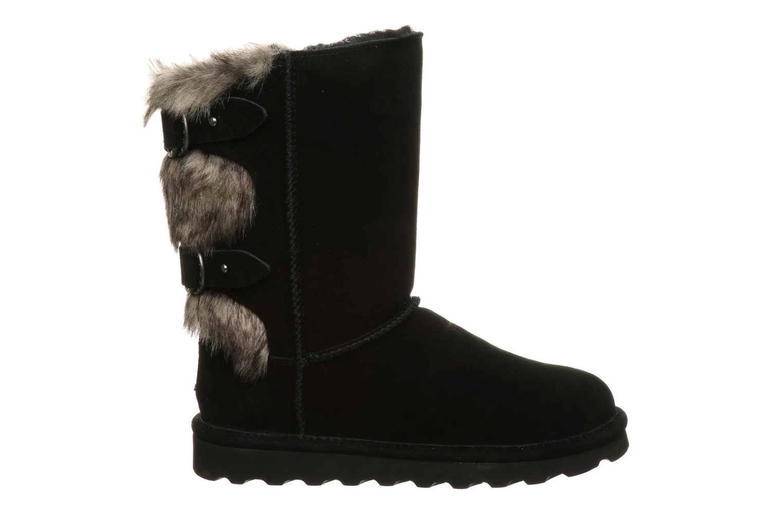 Bearpaw Eloise is a warm boot for chilly weather. These durable cold weather boots have suede uppers, faux fur or wool blend back panel and rubber outsole. Double D-ring buckles, wool blend lining and sheepskin comfort footbed makes these boots ideal for autumn and winter.