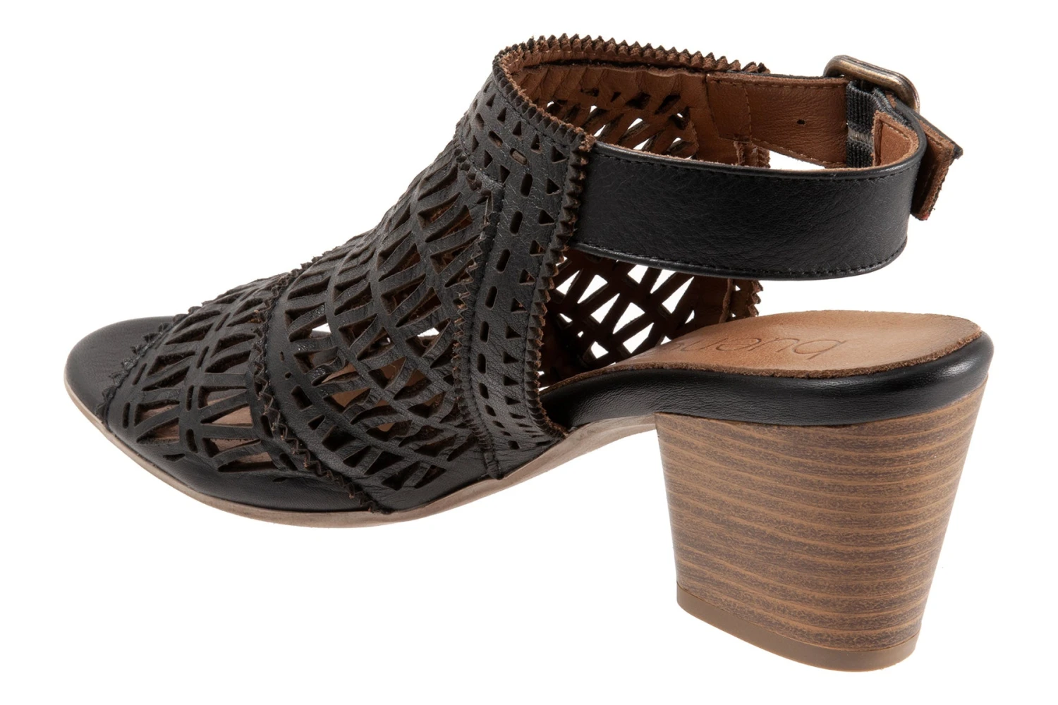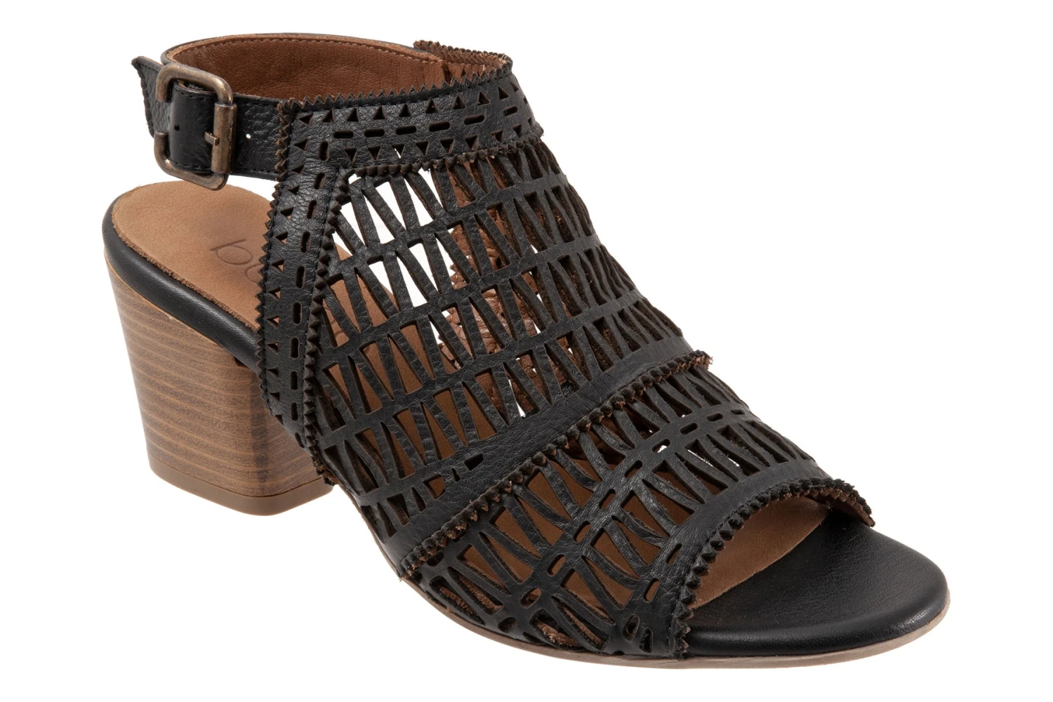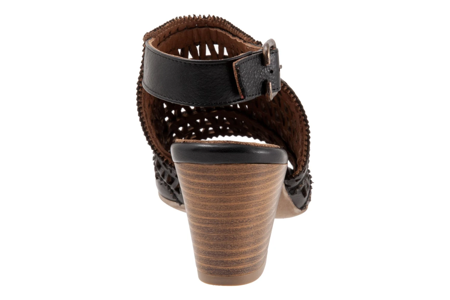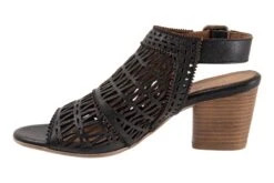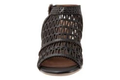 A sexy stacked wedge heel with an adjustable strap and cut out designs for a casual style.