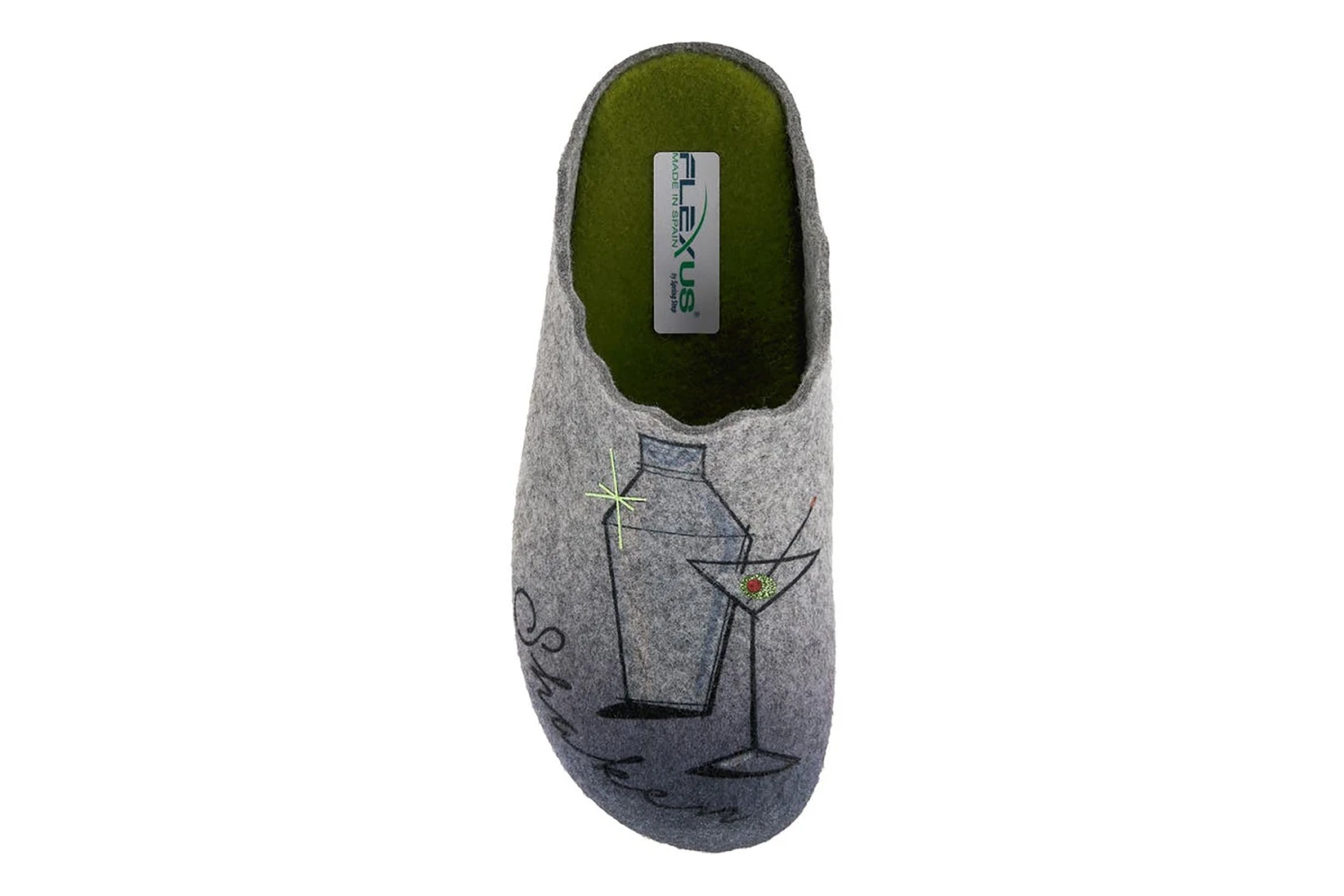 Flexus COCKTAIL Enjoy a cocktail in this indoor/outdoor slipper featuring shaken or stirred martini artwork on a comfort sole.