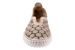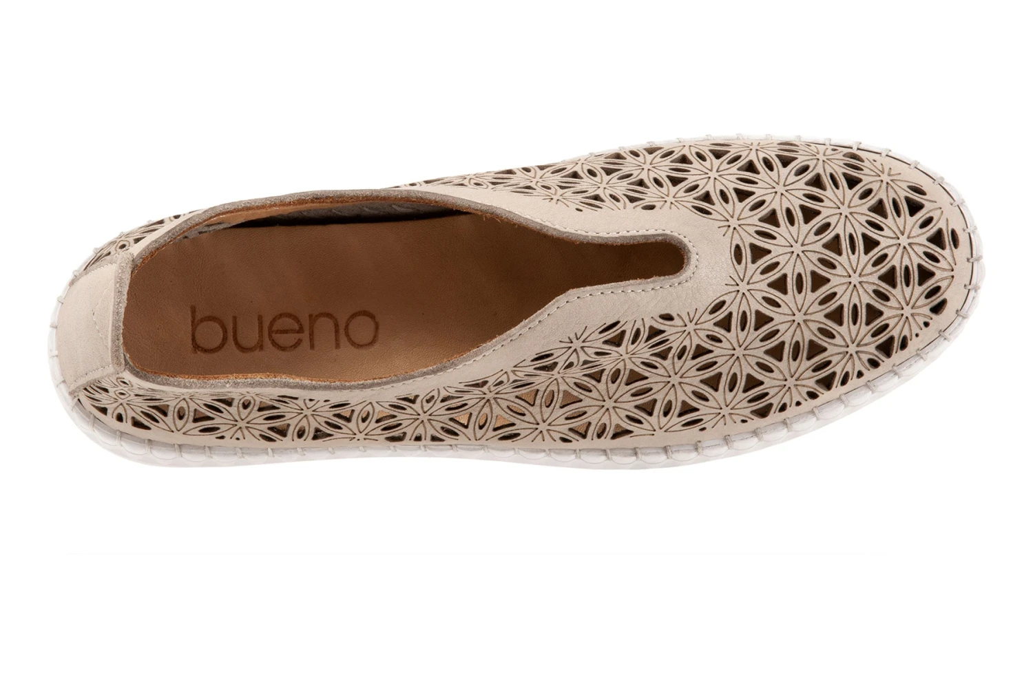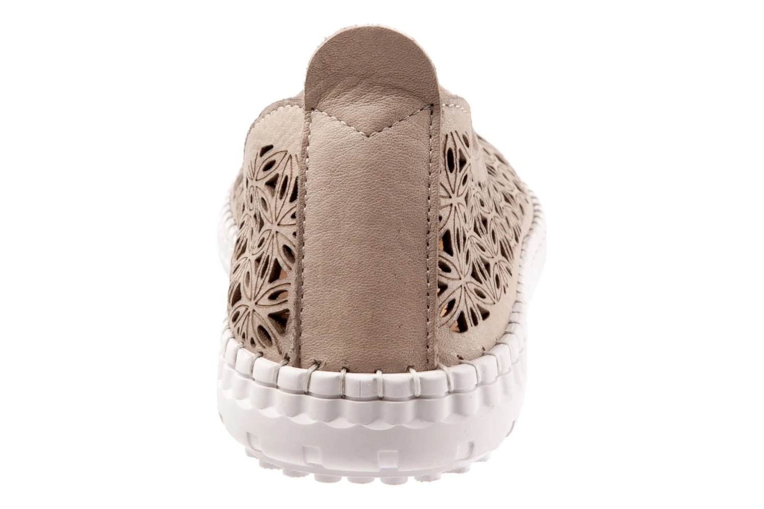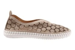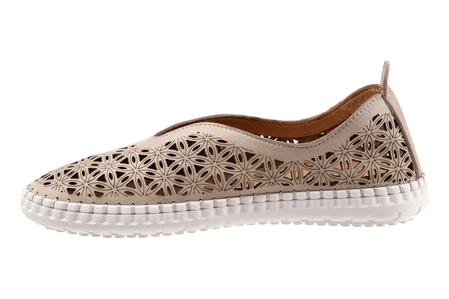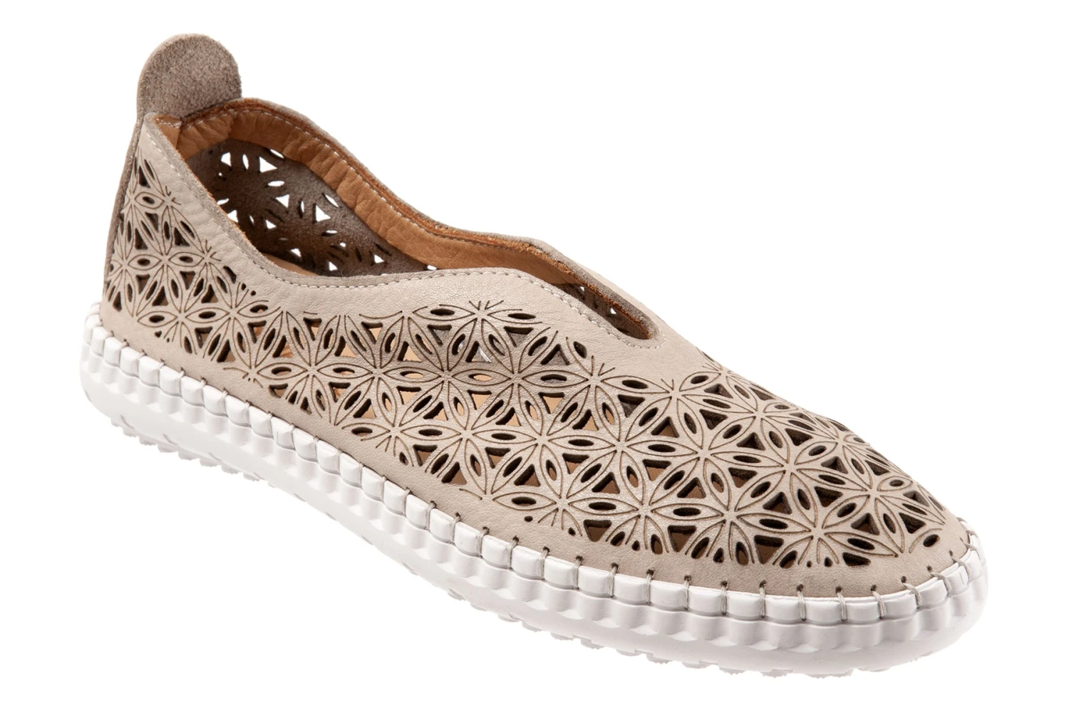 Slip on leather designed upper with a geometric pattern for a casual style.