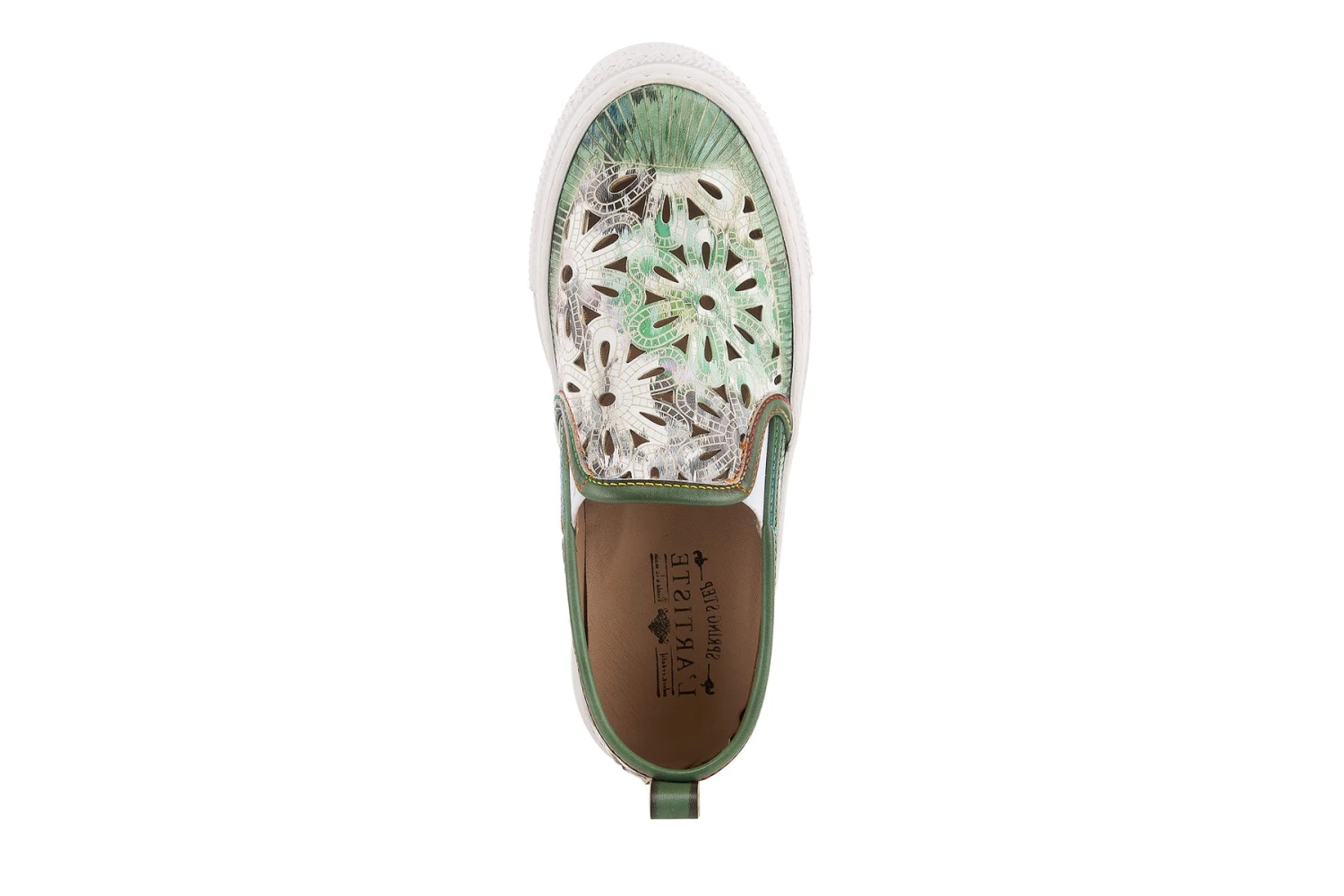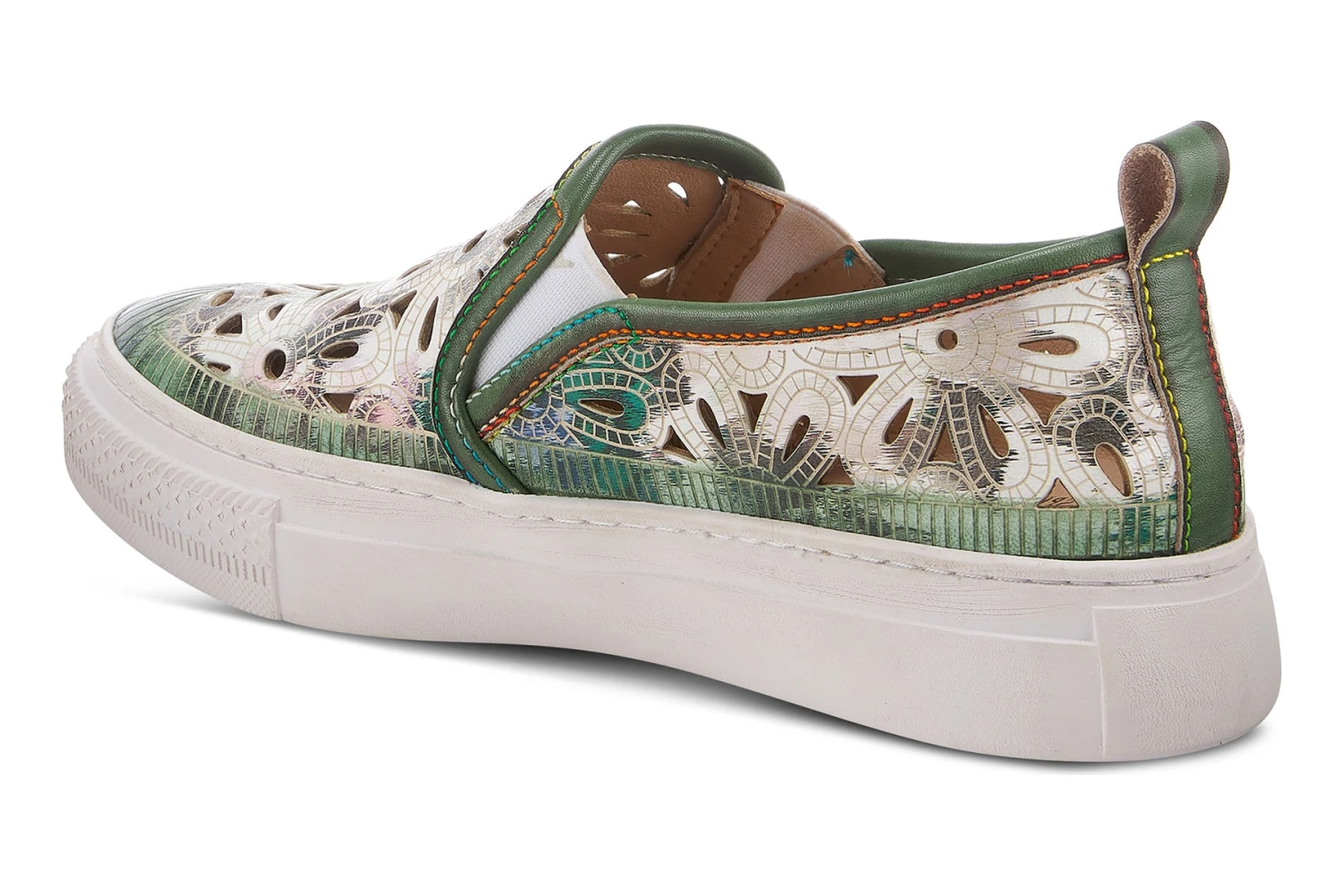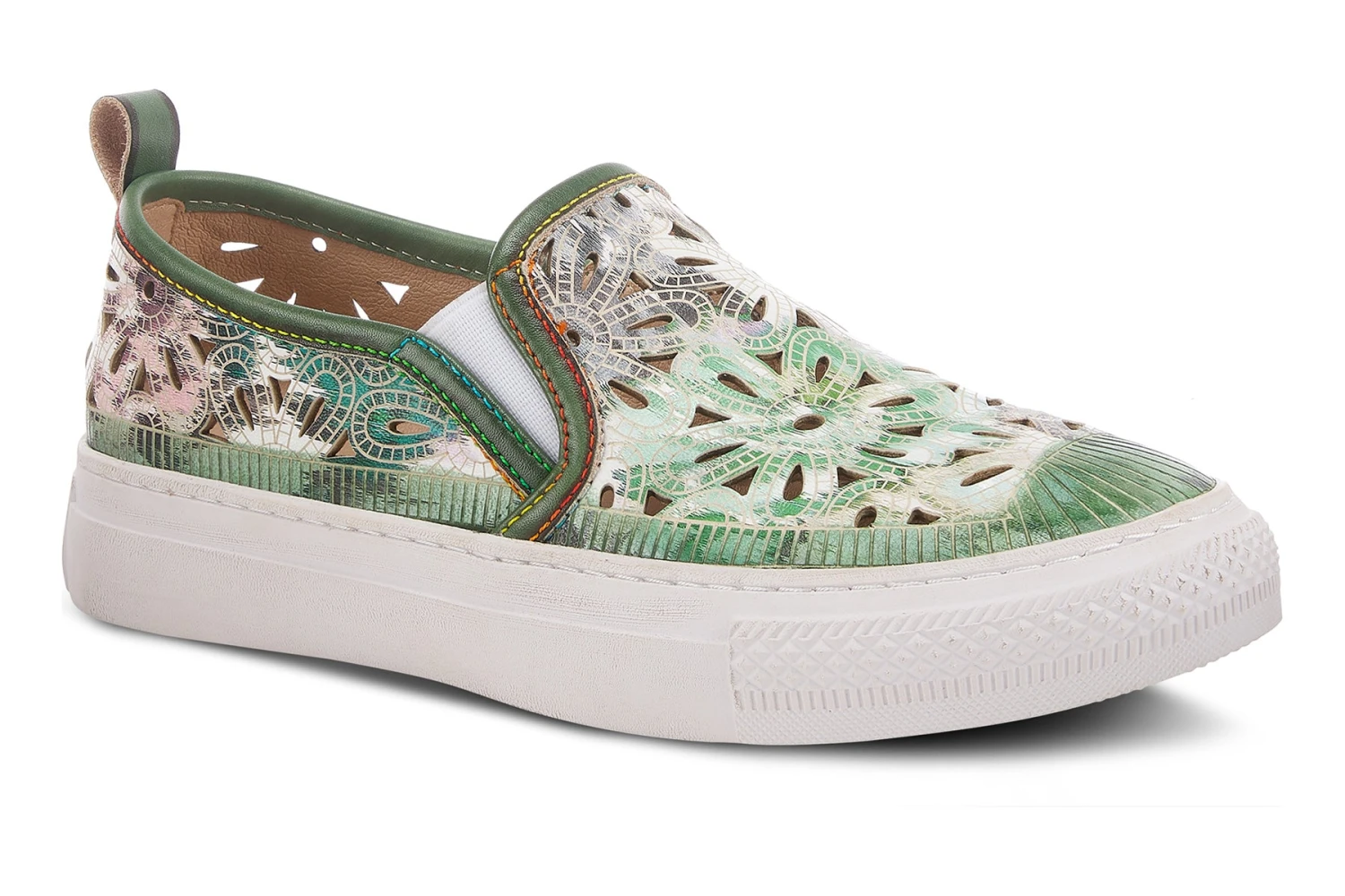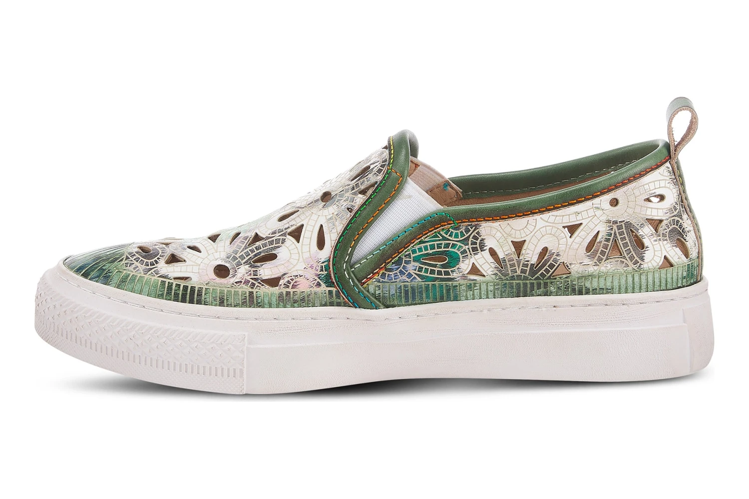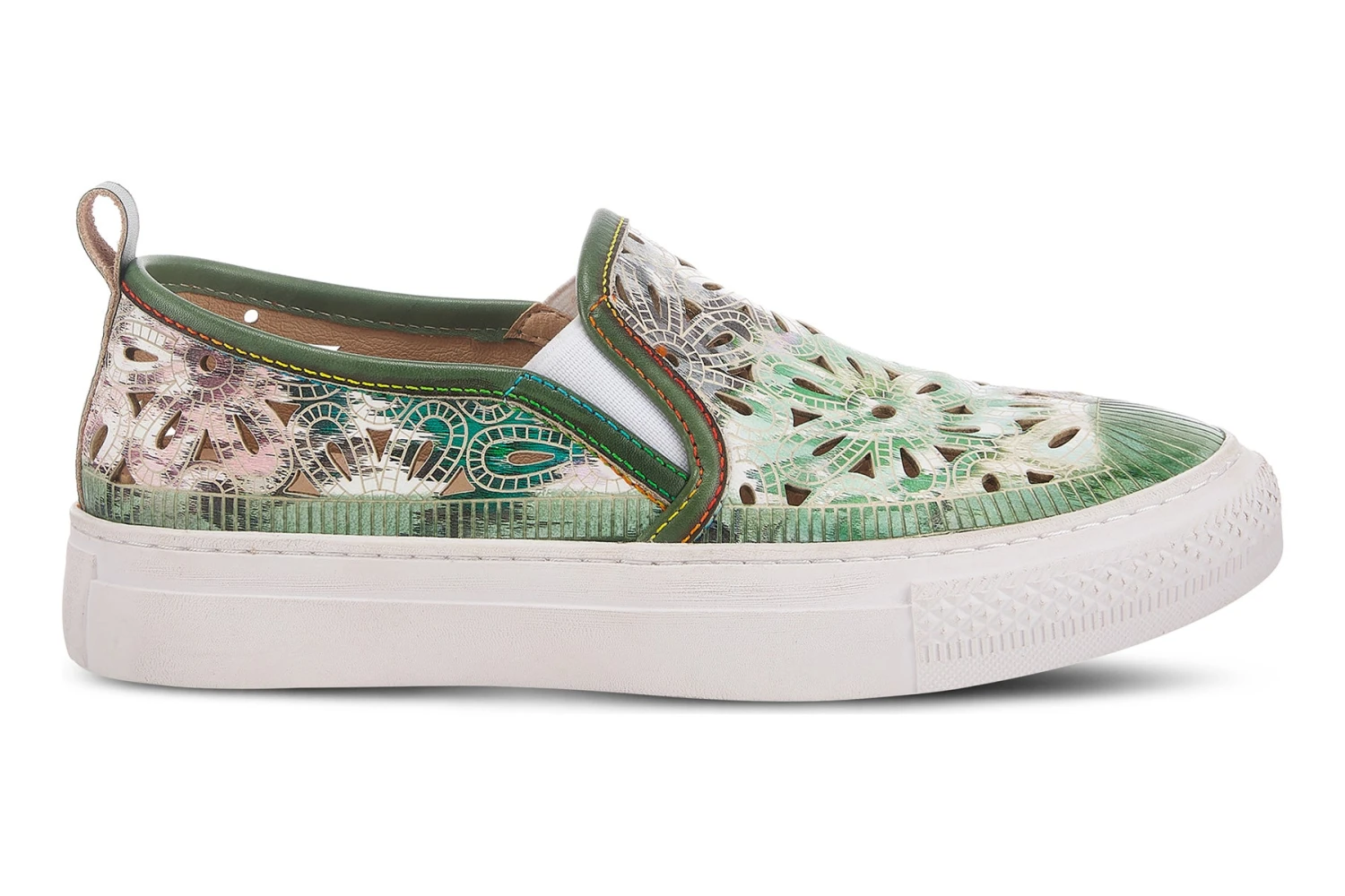 L’Artiste Style: Denofeden- Trendy and comfortable multi-colored sneaker featuring a geometrical laser cut-out details, a pull up tab and dual elastic gore on a traditional, flexible sole.