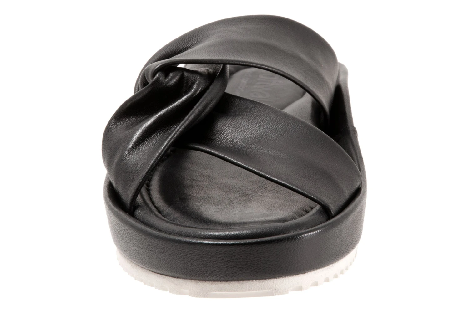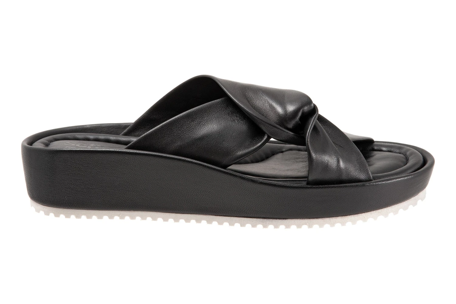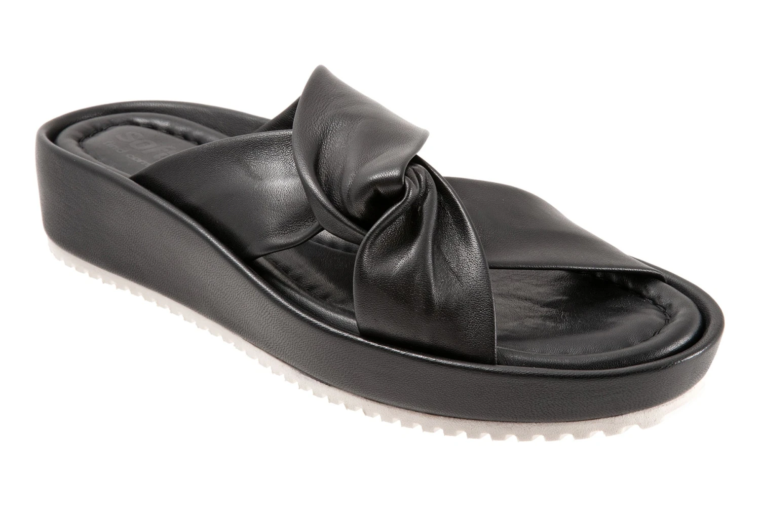 Twisted band slide on sandal with a two toned sole detail for your everyday wear.