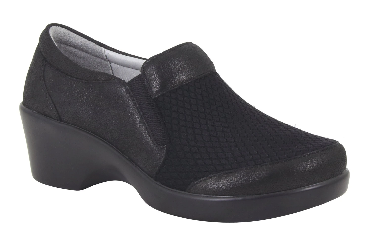 Sleek style meets total comfort in the women’s Alegria Eryn. The breathable leather upper features dual elasticized goring for an optimal fit. The removable footbed accommodates custom orthotics, while the slip resistant outsole provides durable traction and stability.