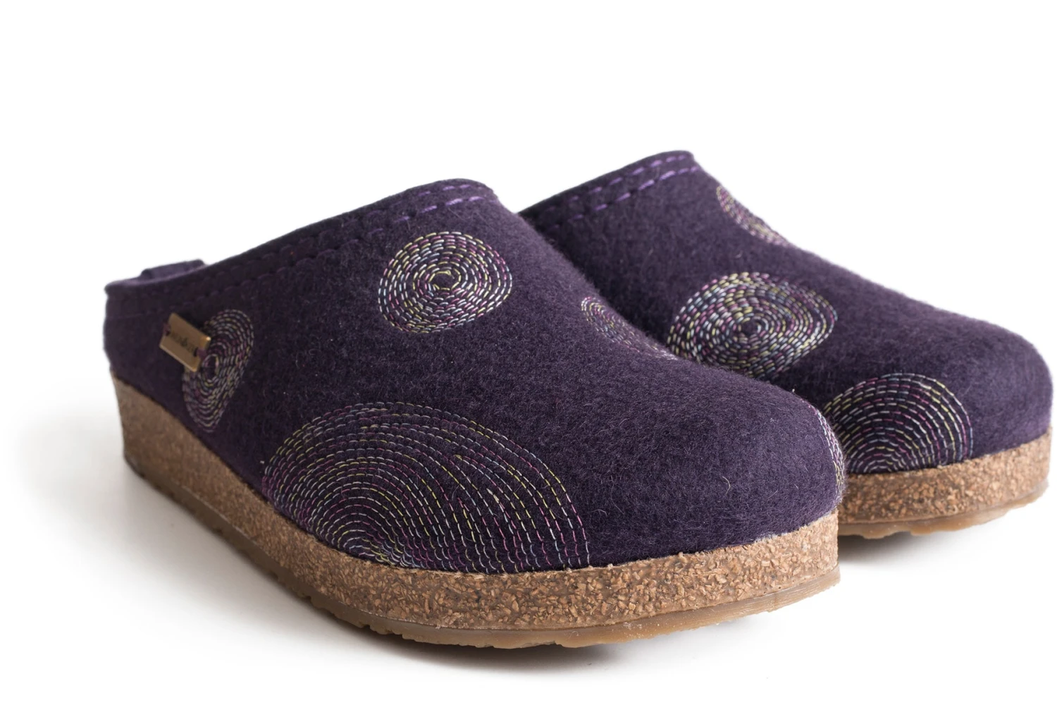 Slip on and go in the women’s Haflinger Spirit open back clog. The convenient, easy to wear construction features a wool felt upper embellished with stitching for added flair. The breathable wool-covered, cork and latex footbed with arch support molds to the foot for a customized fit.
