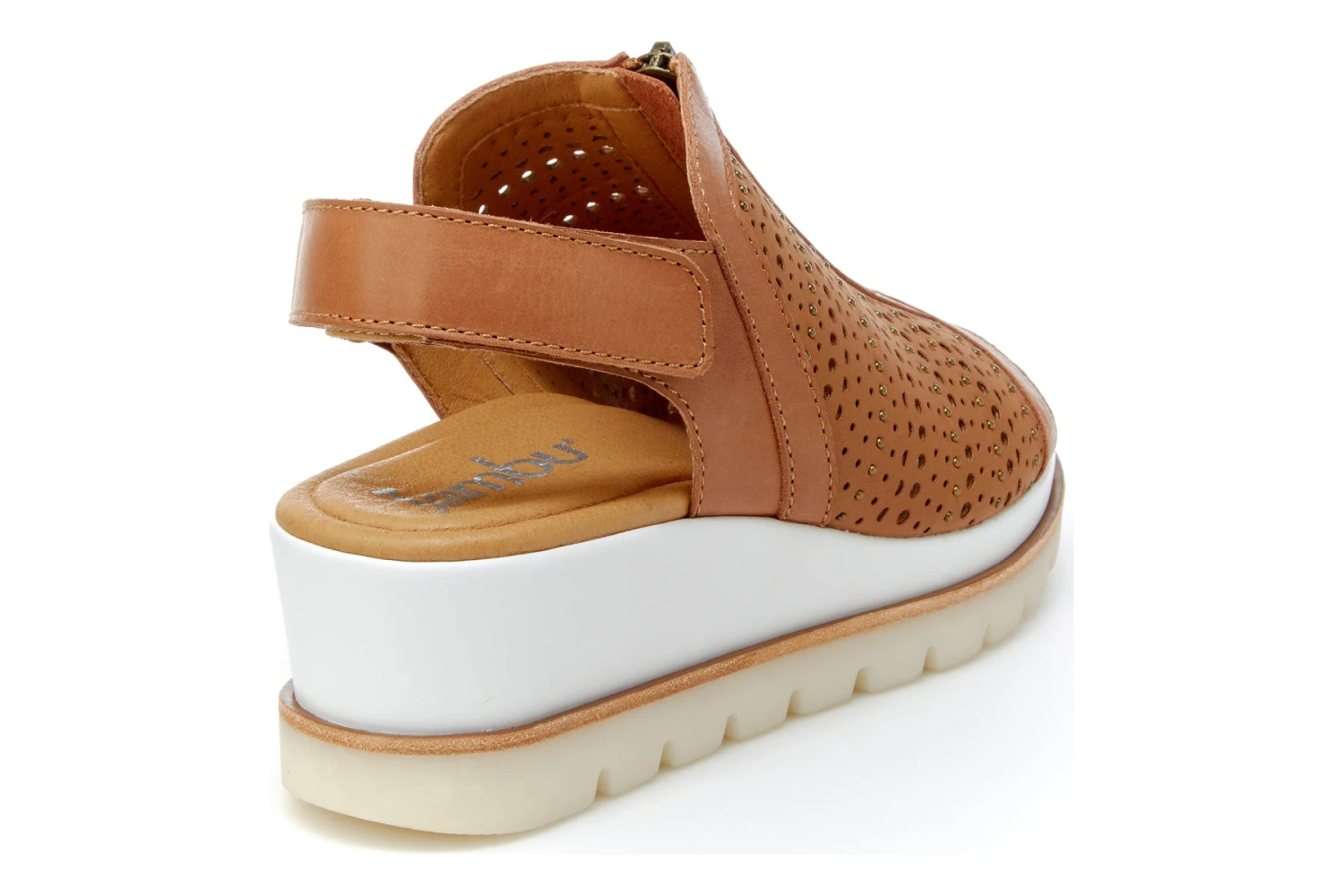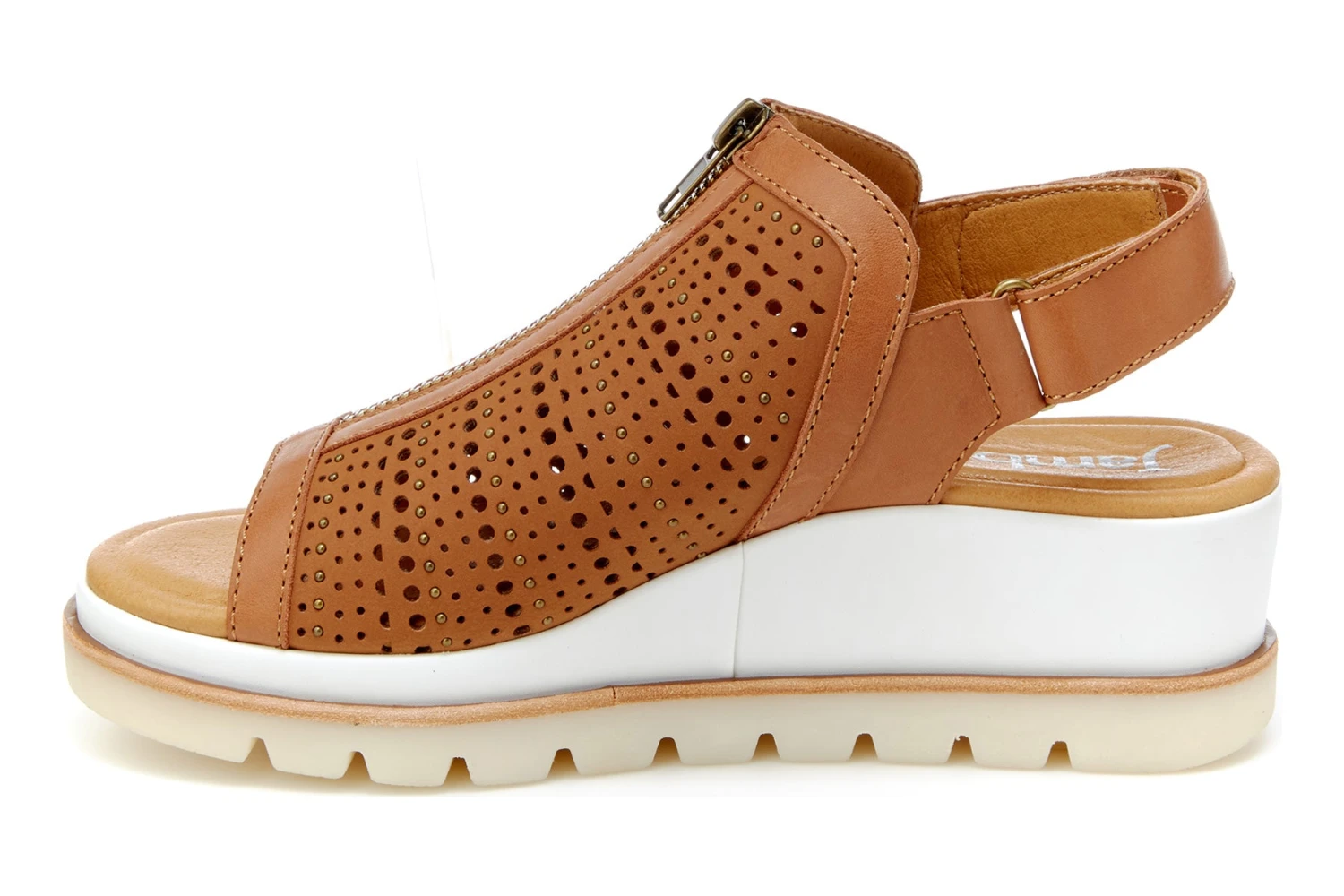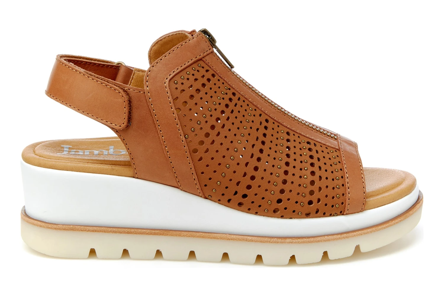 Carry yourself with confidence and flair in the Harmonia. This fashionable spring sandal pairs a sporty, lightweight design with a slight wedge and zipper closure for a trendy twist. Circular perforations double as an eye catching aesthetic detail and source of breathability.