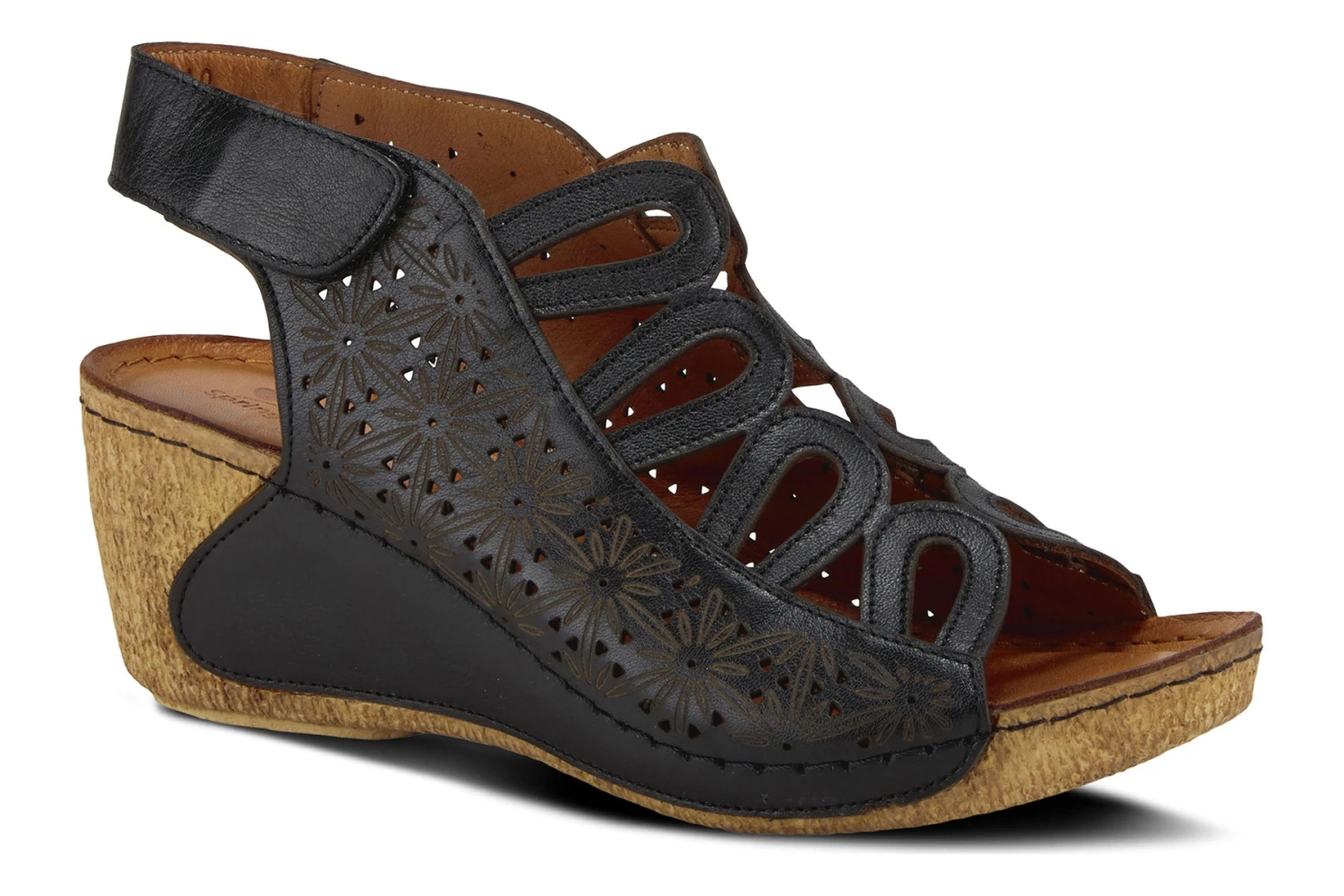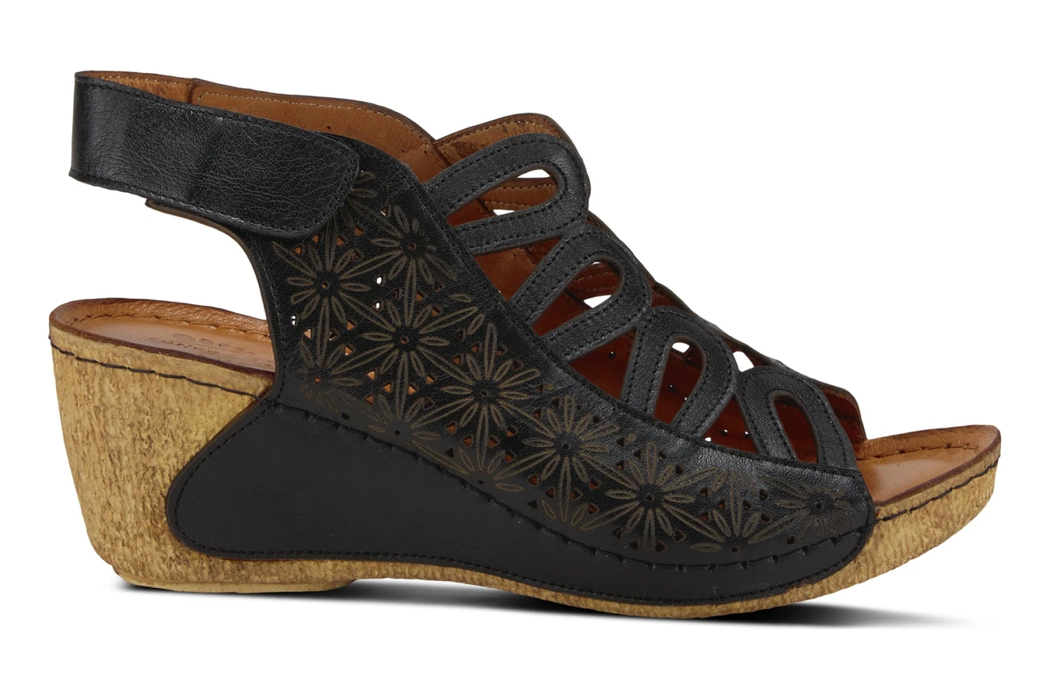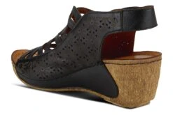 Mediterranean-influenced, high-quality premium leather sandal featuring a beautiful and functional laser etching and cutout design for increased flexibility and breathability, and dainty tonal stitchwork all on a strong stitched-to-sole construction, sculpted, comfort wedge with a flexible forefoot and a platform.