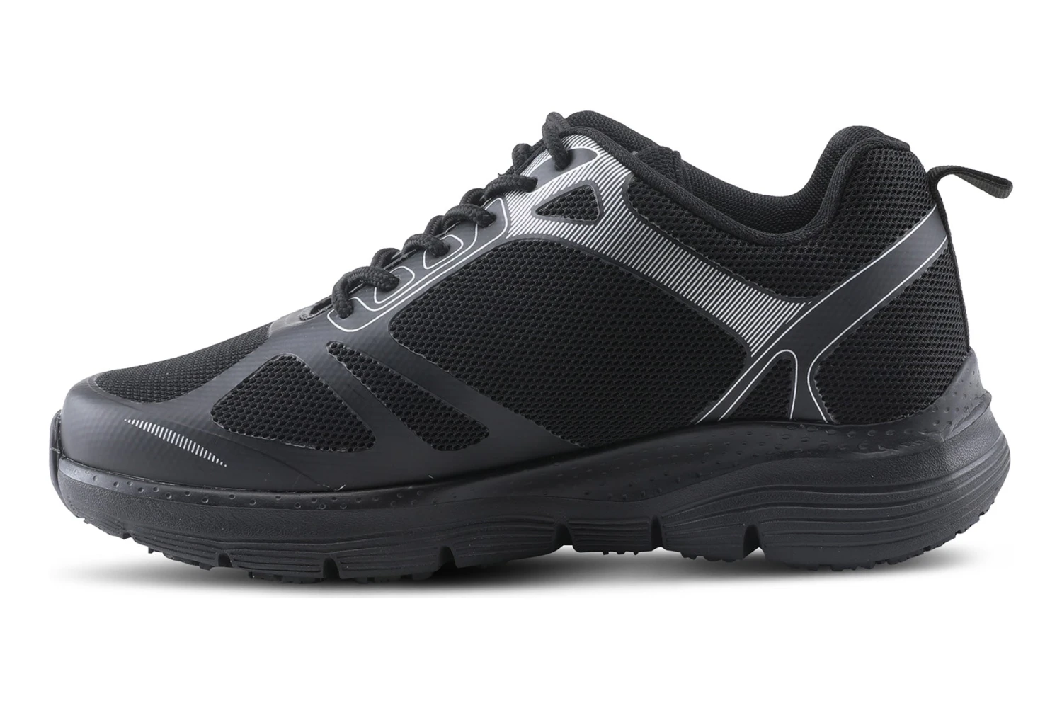 Lightweight and breathable sneaker that provides support, comfort, and safety for all-day wear with an oil and skid-resistant tread.