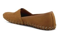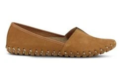 Mediterranean influenced, high-quality premium leather slip-on shoe featuring a center notched vamp with a V-shaped stretch elastic insert, and dainty tonal stitchwork all on a strong stitched to sole construction, sculpted, comfort flat with a flexible forefoot and removable insole.