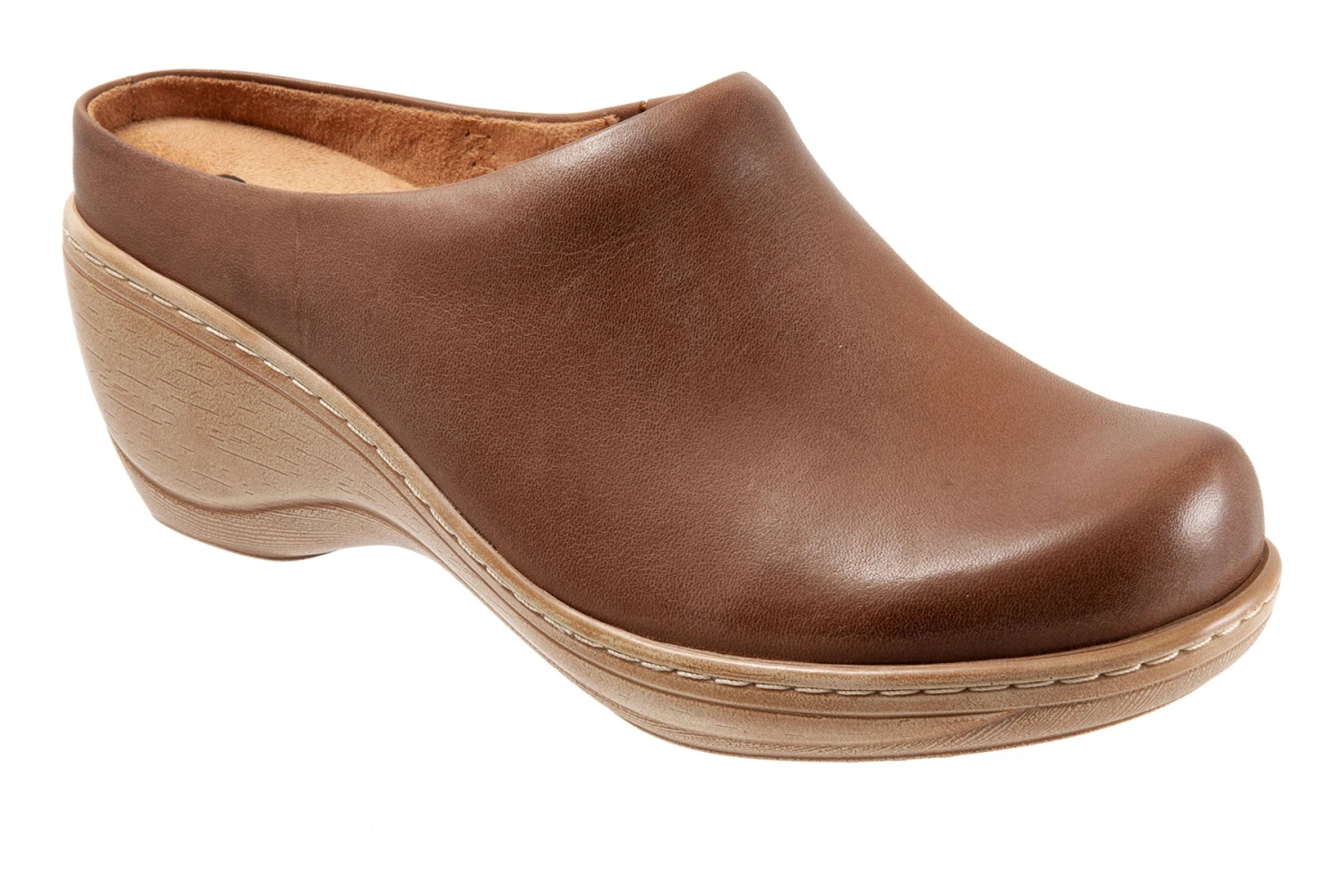 Softwalk Madison is a curvy platform wedge. These clogs have full grain leather uppers, removable footbed, elastic goring and a sturdy rubber outsole. A supportive steel or iron shank, microfiber footbed lining and 2 ¼ inch platform wedge heel will make these clogs a new favorite.