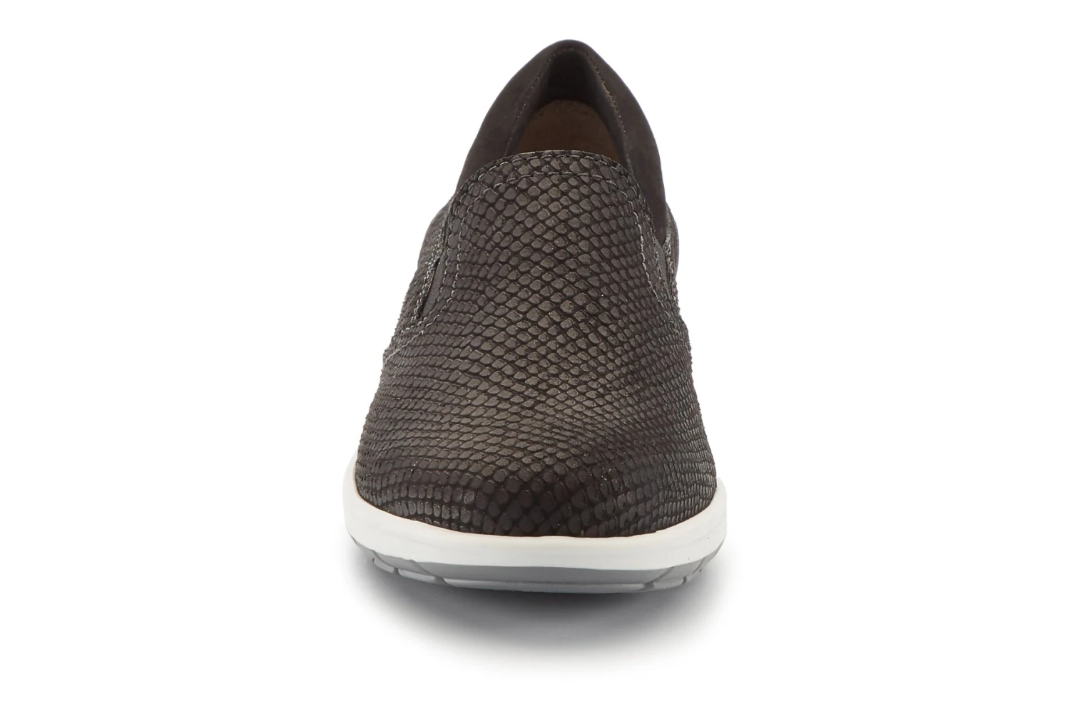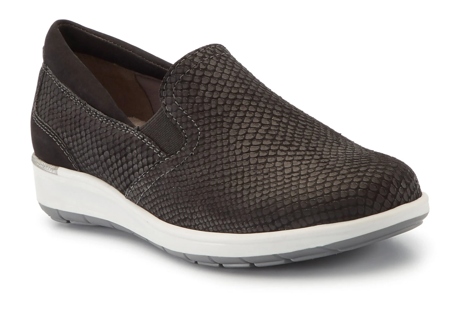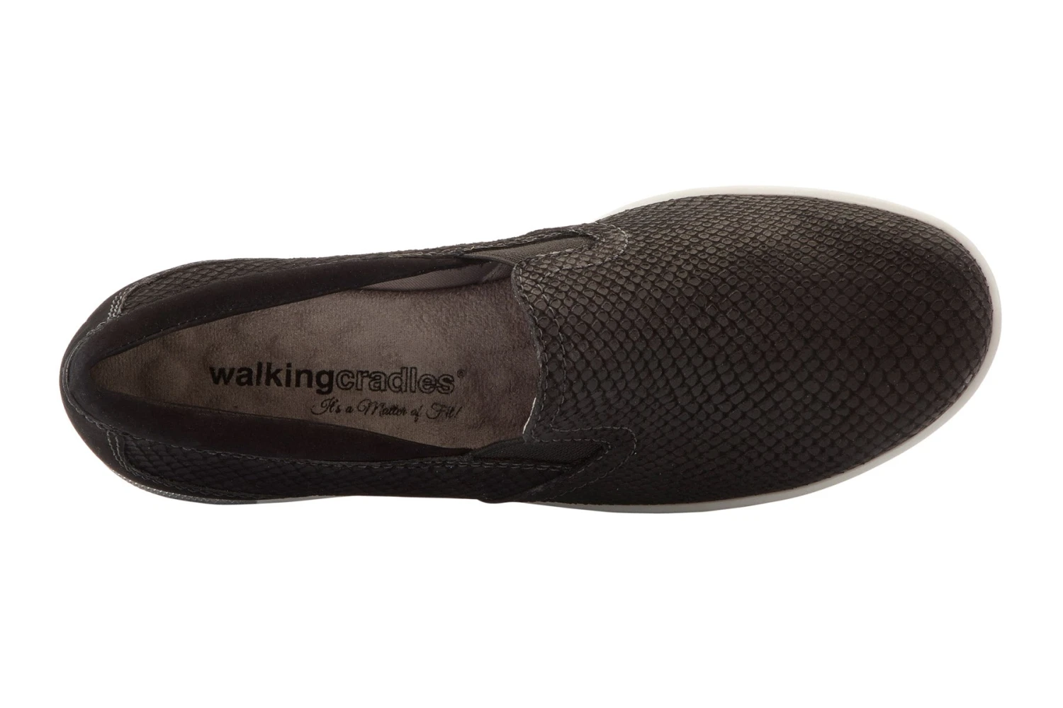 Walking Cradles Orleans is a casual and comfortable slip-on sneaker. Leather, snake print uppers offer support, while a padded collar comforts feet all day. Dual side goring allows for easy on-and-off and a TPR outsole adds traction and stability.