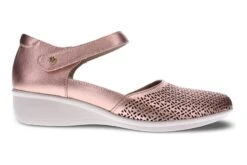 Revere Osaka is an upscale Mary Jane shoe for many occasions. Your feet will enjoy a leather upper, textile lining, tapered wedge and a slip-resistant outsole. A round toe silhouette, padded removable insole and cushioned forefoot support will make these Mary Janes a favorite.