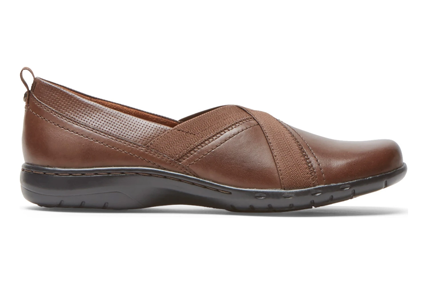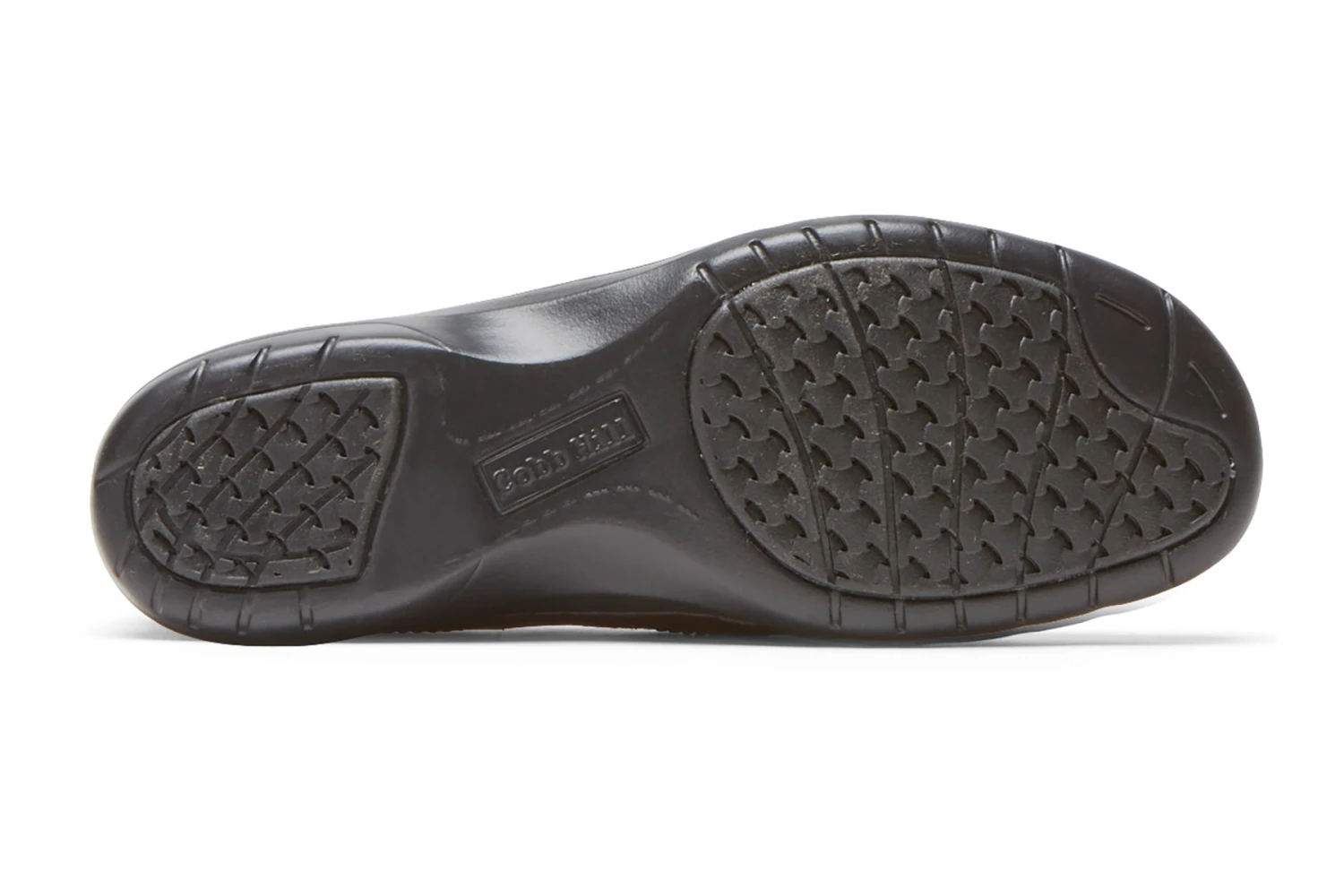 Cobb Hill Penfield Envelope is a chic slip-on shoe. Features include smooth leather uppers, lightweight EVA footbed, cushioned insole and a sturdy EVA outsole. Leather and textile linings, decorative sidewall stitching and slip-on construction with back heel tab completes these popular shoes.