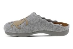 Easy to Slip-on indoor/outdoor wool slipper featuring 2 (two) vibrant embroidered designs ‘hugging dogs’ and ‘hugging cats’ on the vamp.