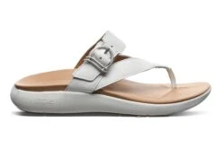 Strole Promenade is a supportive and comfy toe post sandal. These warm weather shoes have leather uppers, adjustable instep strap, toe post and EVA outsole. A sheep leather footbed offers added comfort, while a corrective uplift cradle support system provides arch support all day long.
