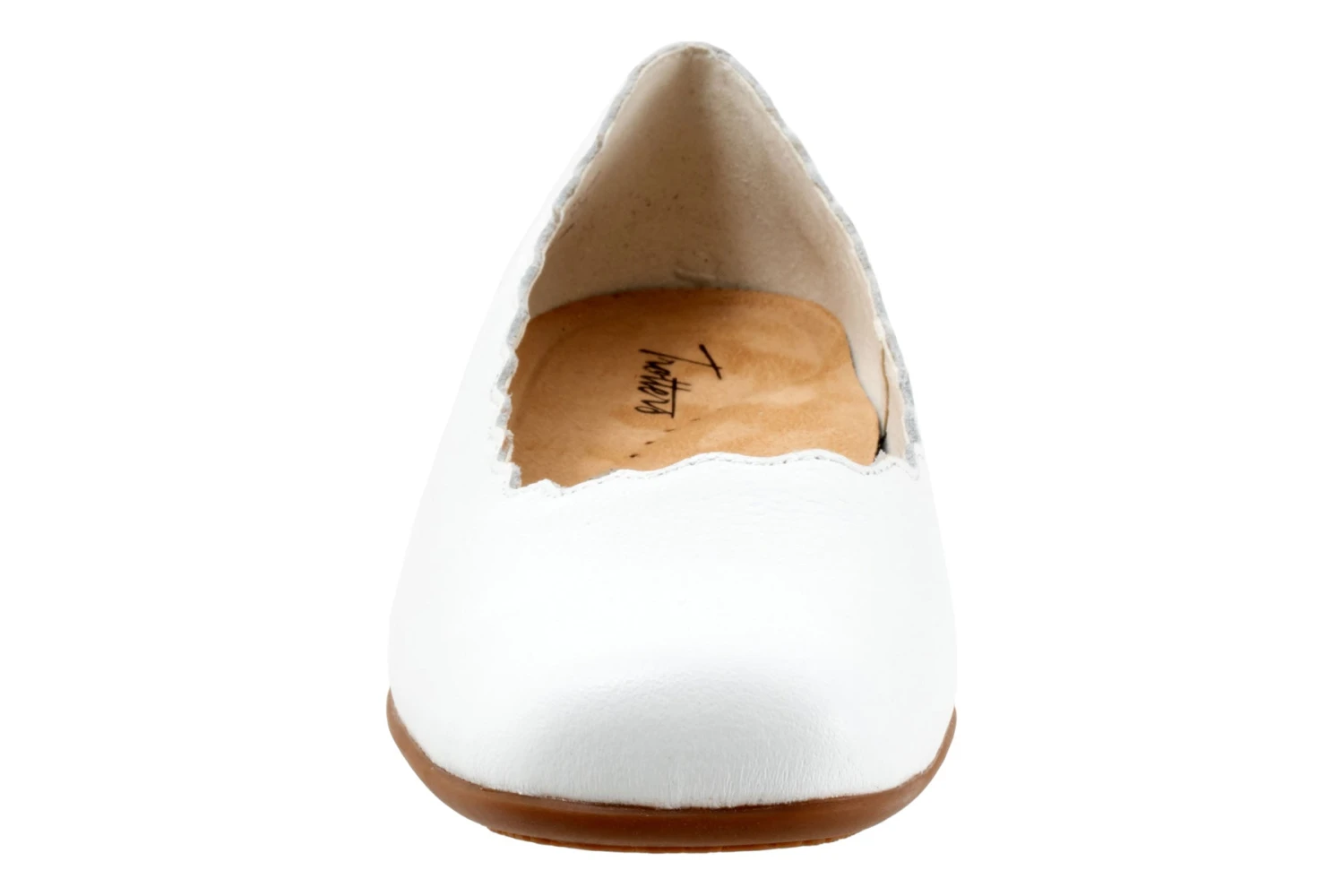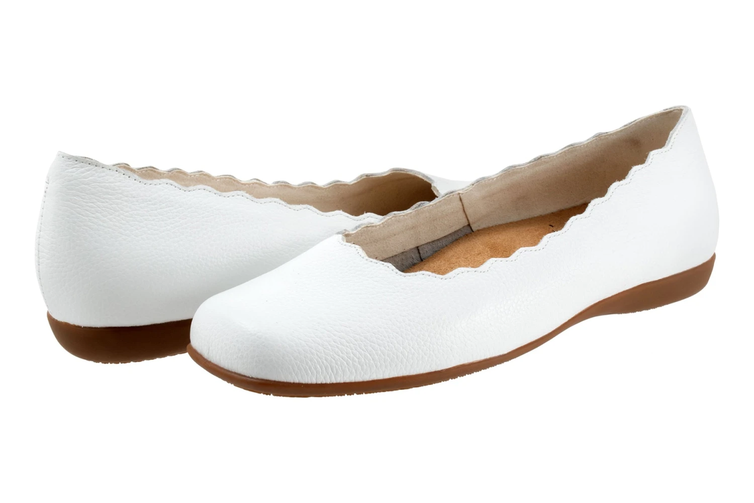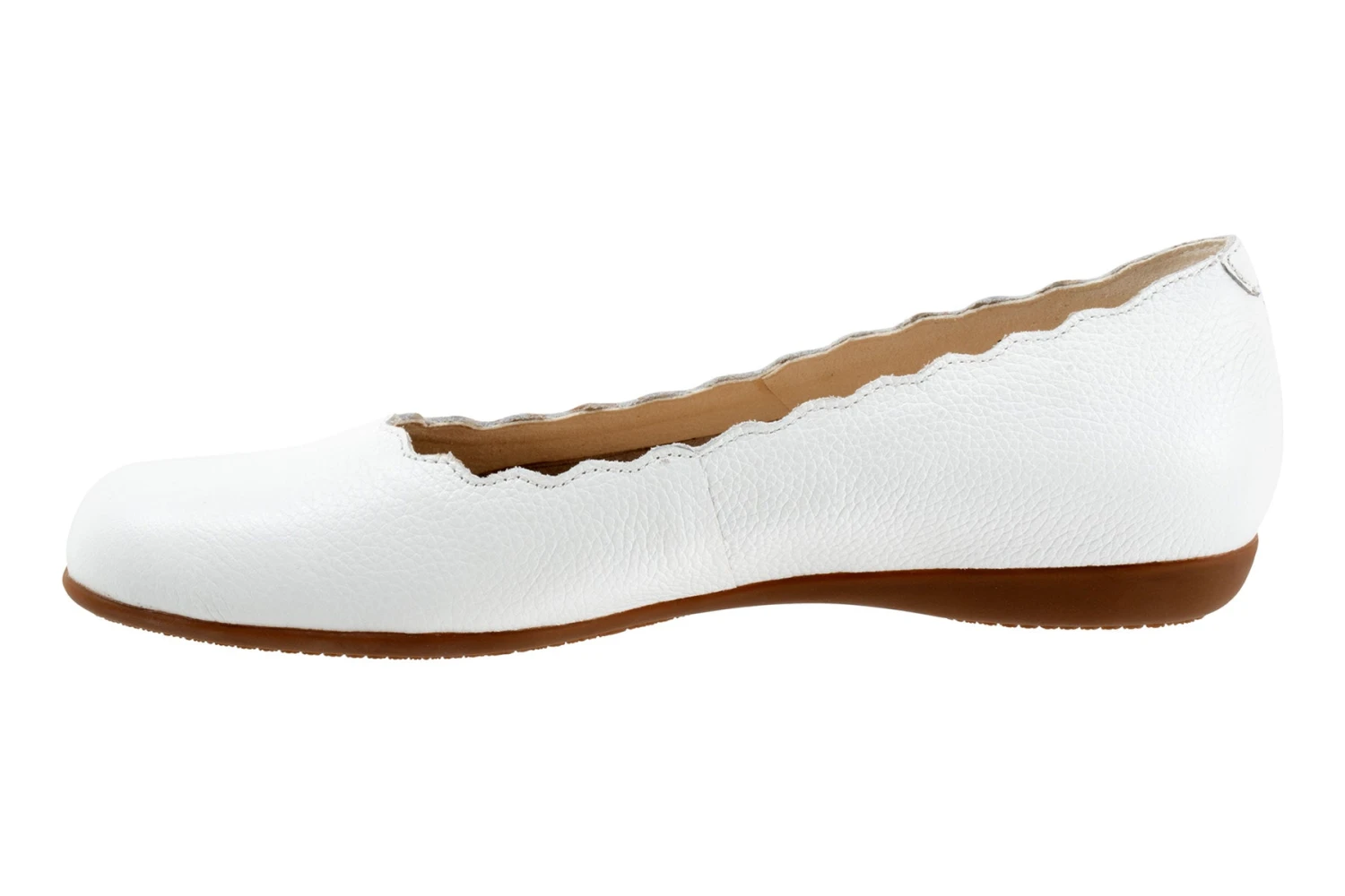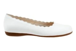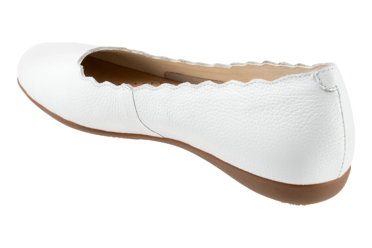 The Sabine flat adds a touch of class with a scalloped edge along the topline. The removable footbed is cushioned and has arch support and the long-wearing sole is a Trotters best seller.