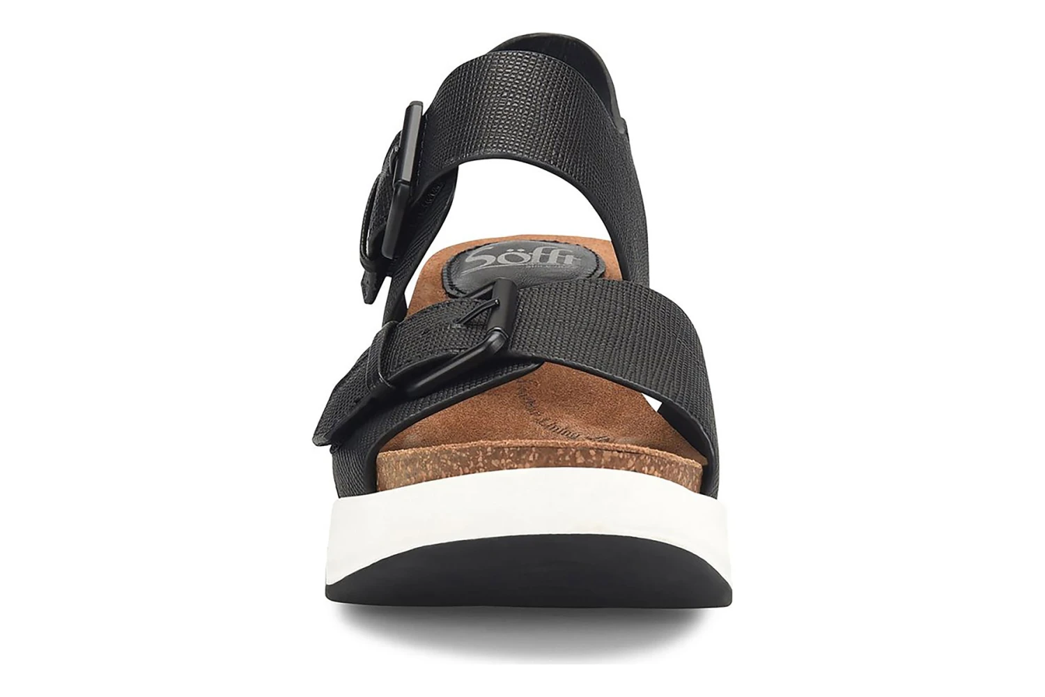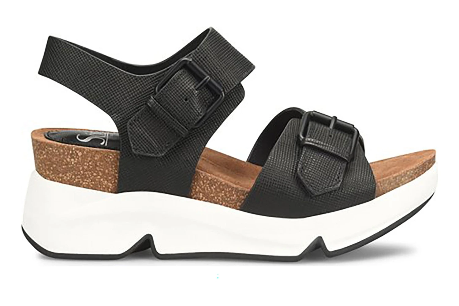 Sofft Castello is a comfortable and sporty adventure sandal. These wedge heels have leather uppers, lightweight EVA midsole and slip-resistant TPR outsole. Adjustable buckle straps with hidden hook and loop closures, cork comfort footbed with raised foam and 2 ¾ inch heel height outlines these sporty sandals.