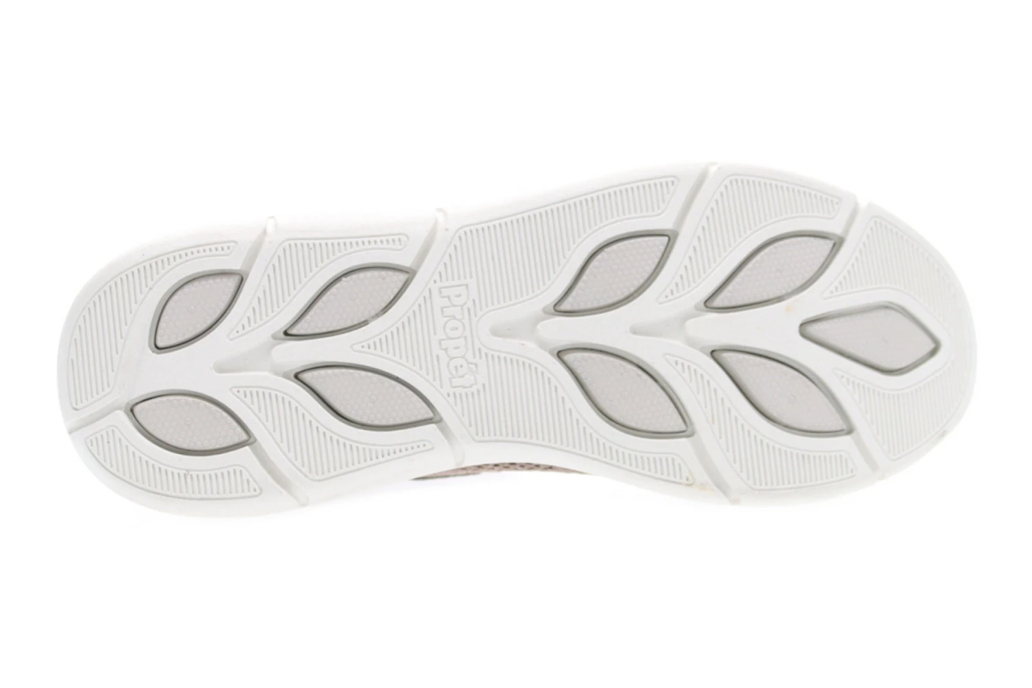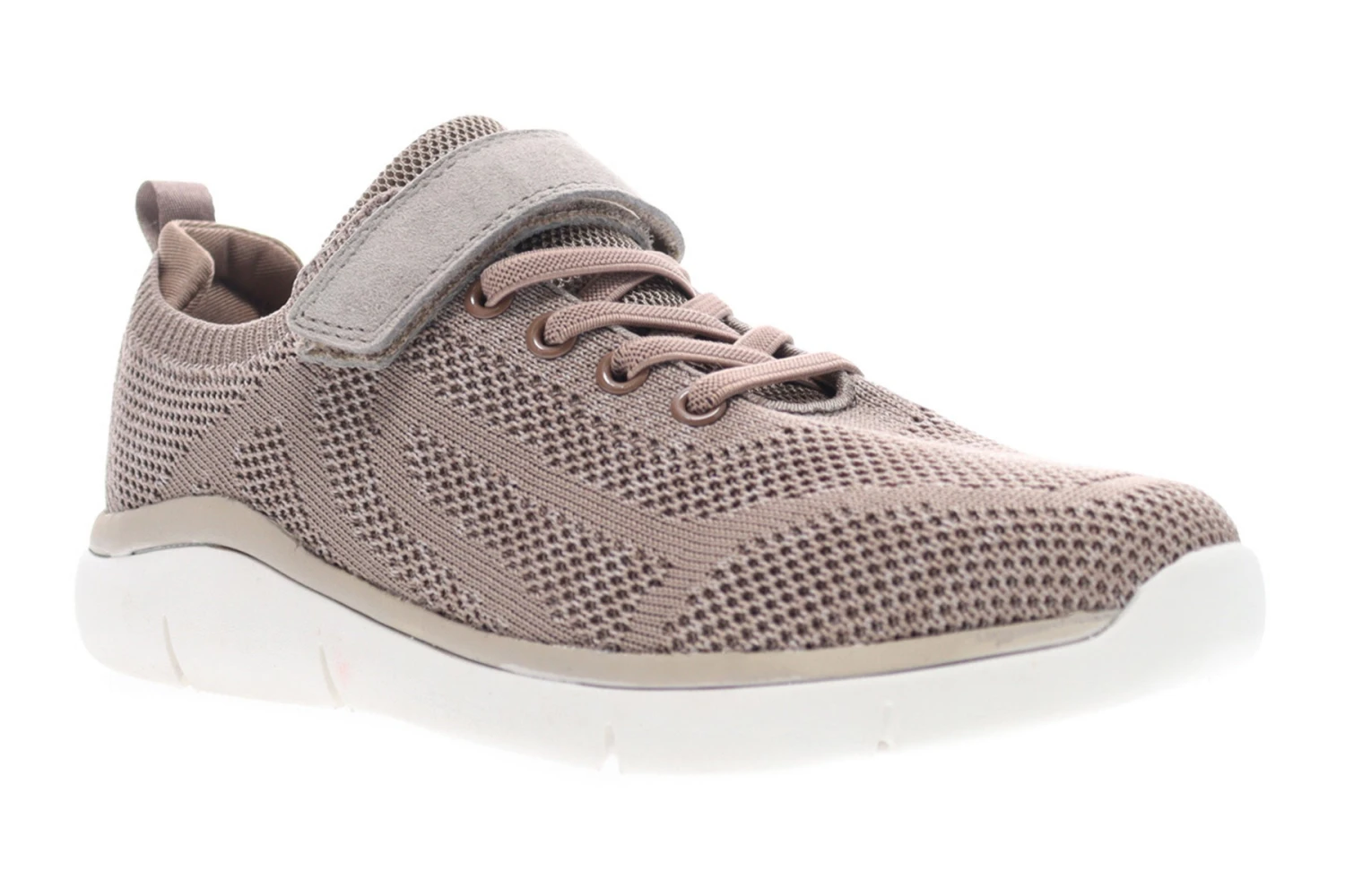 Propet Stevie is a comfortable and secure sneaker. These active shoes have knit mesh uppers with elastic laces, adjustable strap and an EVA insole and outsole. An arch-supporting high-density open-cell PU foam keeps feet in place, while removable double insoles add extra comfort.