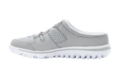 Enjoy lightweight comfort and sporty style in the women’s Propet TravelActiv Slide. The mesh upper and lining offer moisture-wicking, breathable comfort. The removable EVA footbed accommodates custom orthotics, while the EVA outsole provides traction and durability.