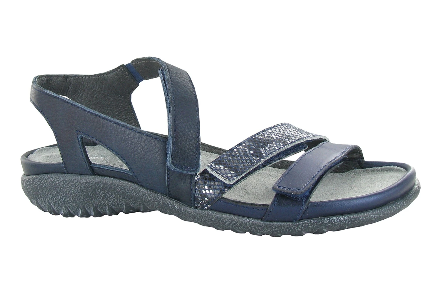 The Whetu is a comfortable and stylish everyday sandal. Triple hook and loop closures and gore create full adjustability. Naot’s removable, anatomic cork & latex footbed is wrapped in pampering suede and molds to the shape of the foot with wear. The Koru Collection features a 1″ polyurethane sole which is extremely lightweight, durable & slip resistant. This collection uses a hand-sewn Strobel construction making it strong and extremely flexible.