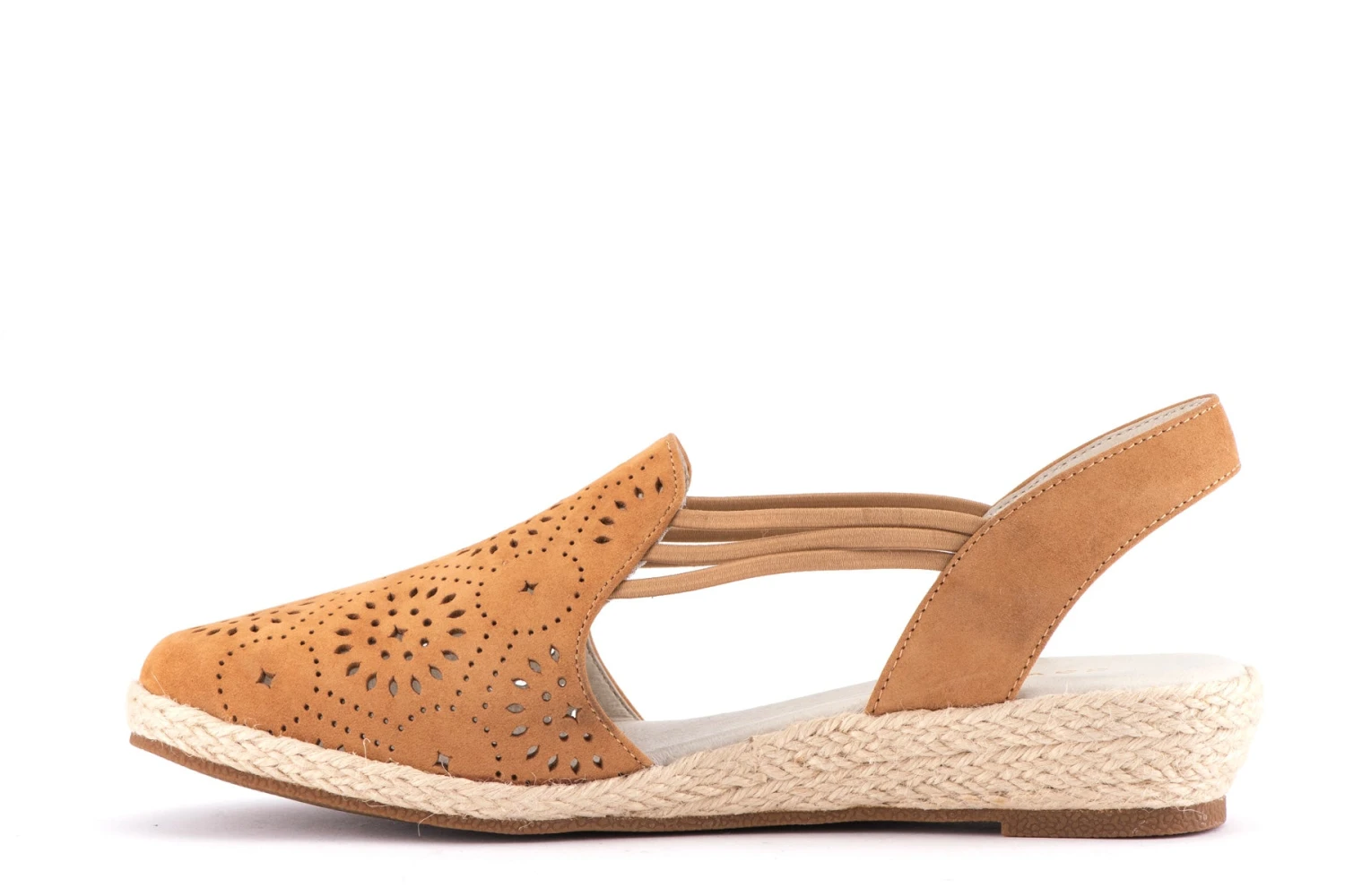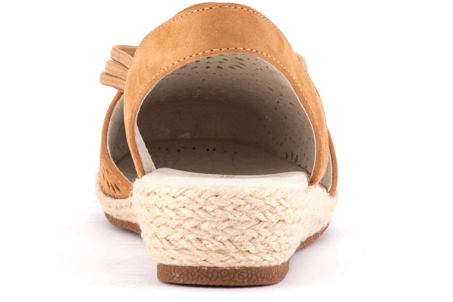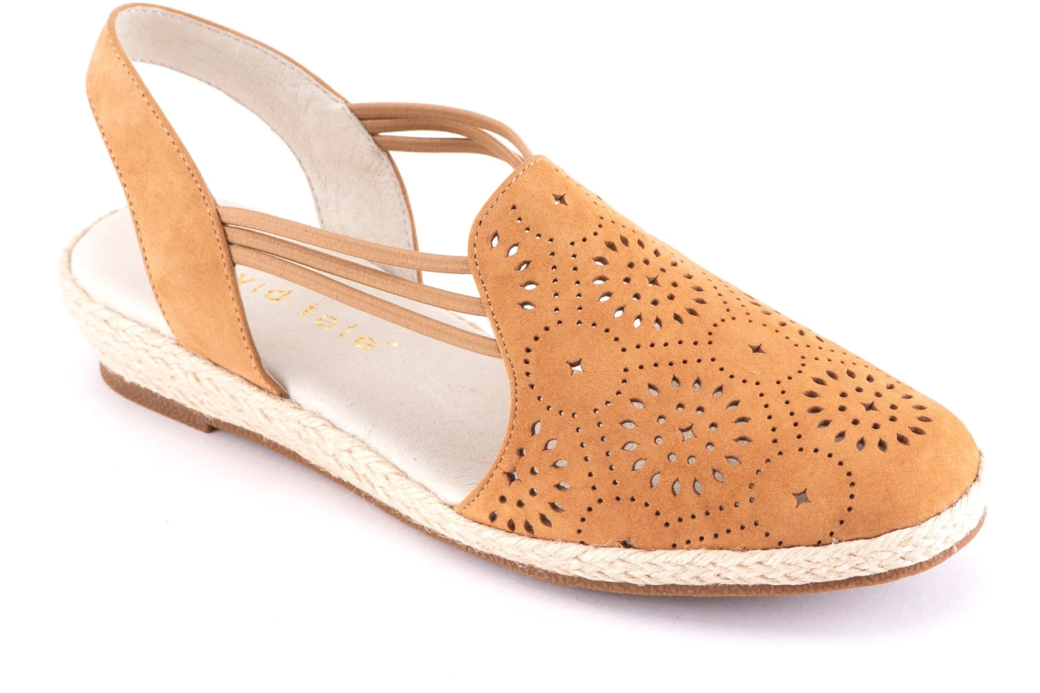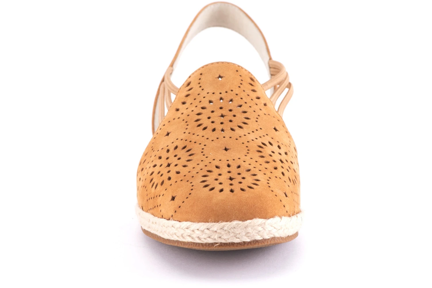 Floral perforations and a breezy slingback strap further the vintage-inspired style of this cushioned espadrille wedge.